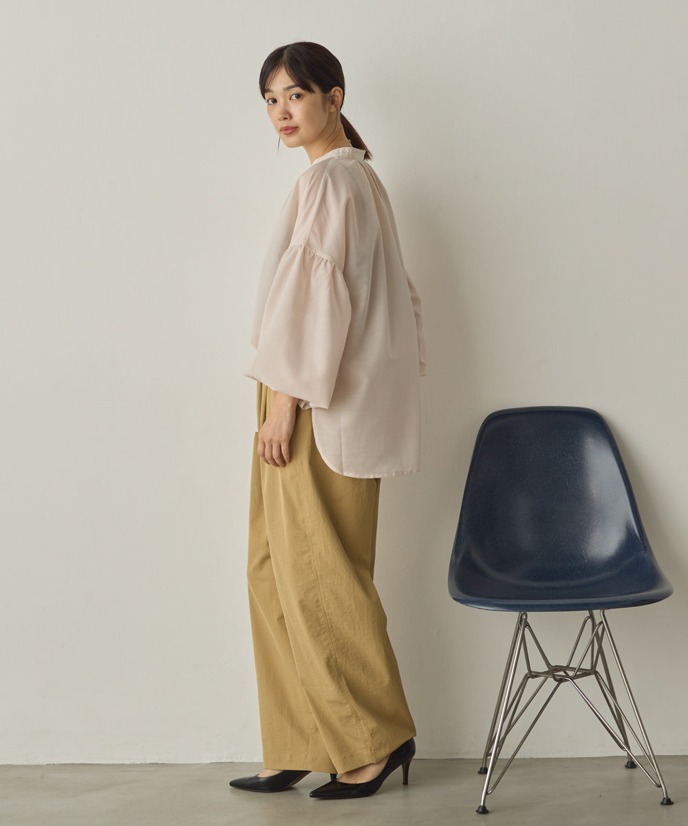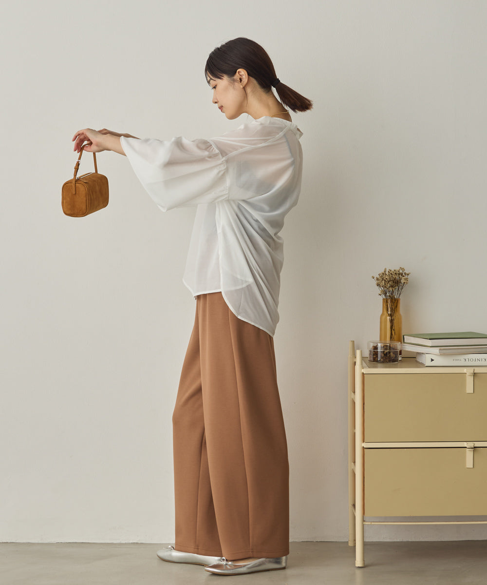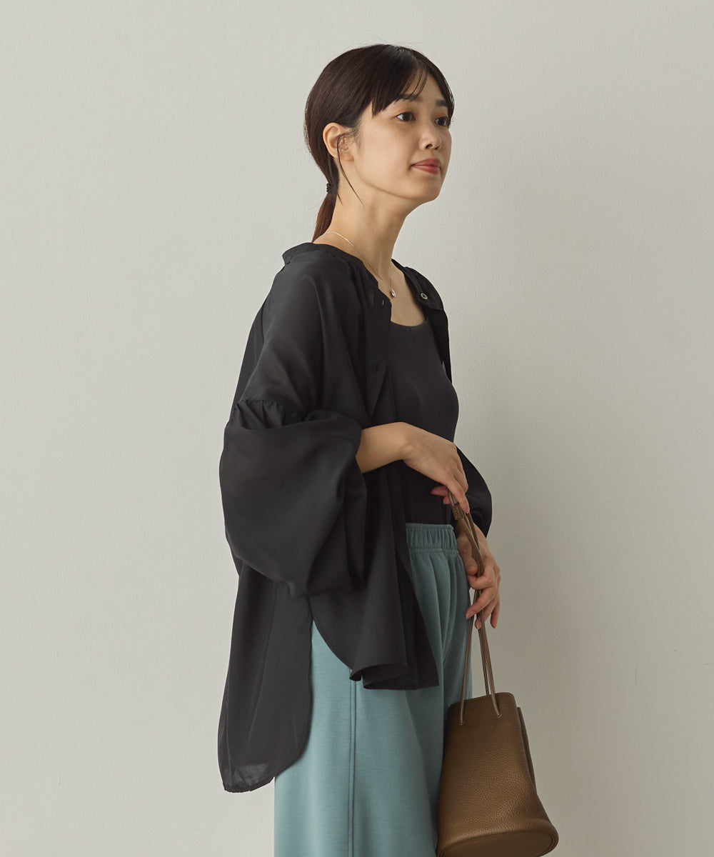 ほんのり透け感のある風合いが、抜け感と大人のこなれ感を演出します。