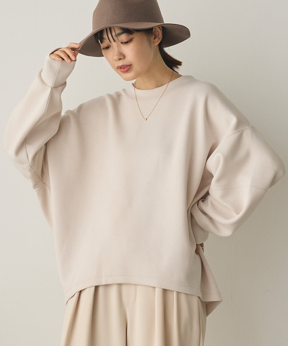 やわらかく肉厚なソフトダンボールニット素材を使用したコクーンシルエットプルオーバー。