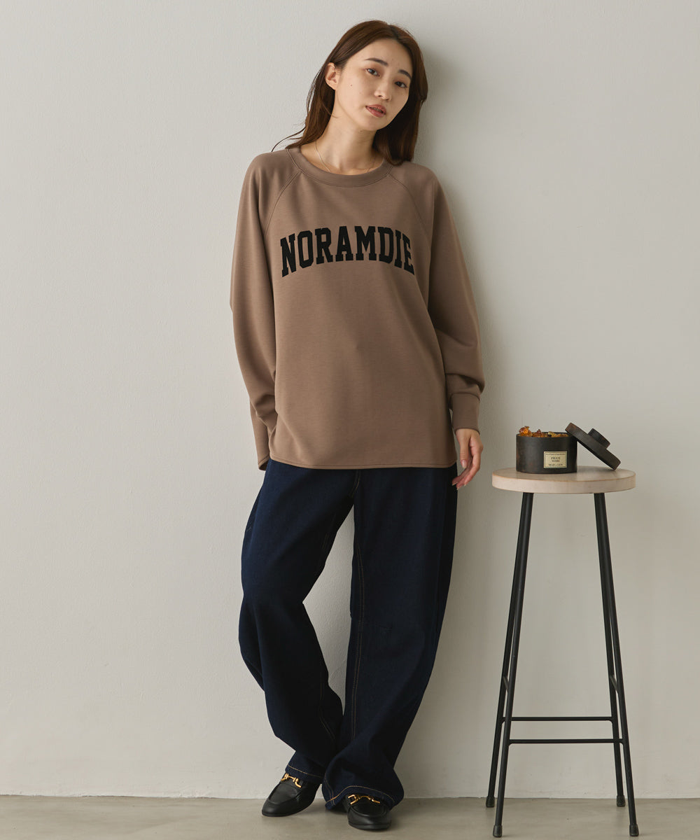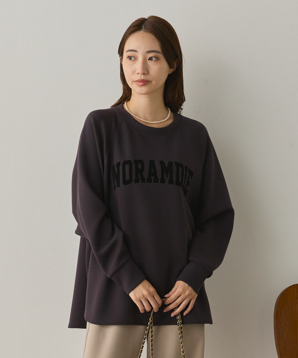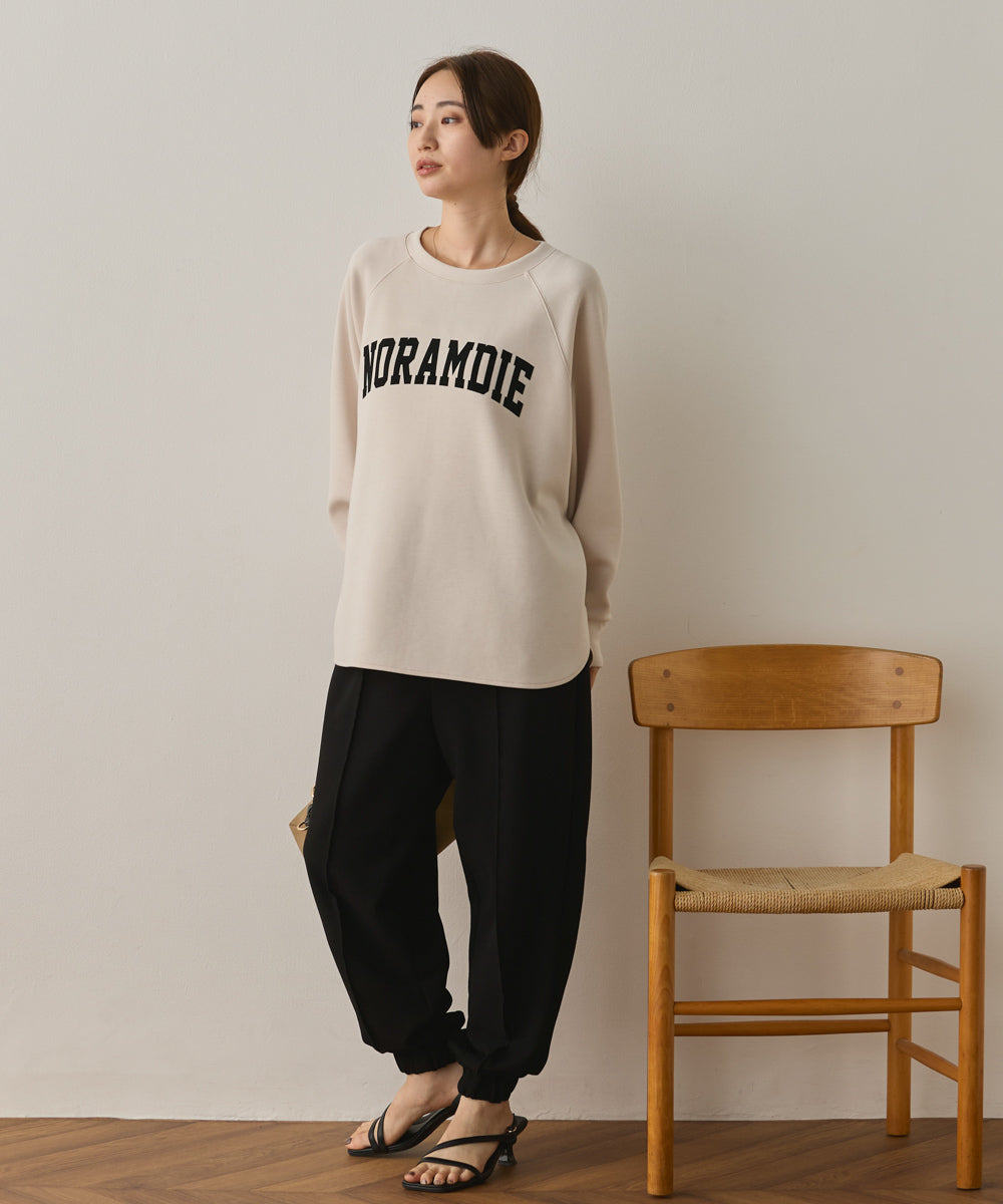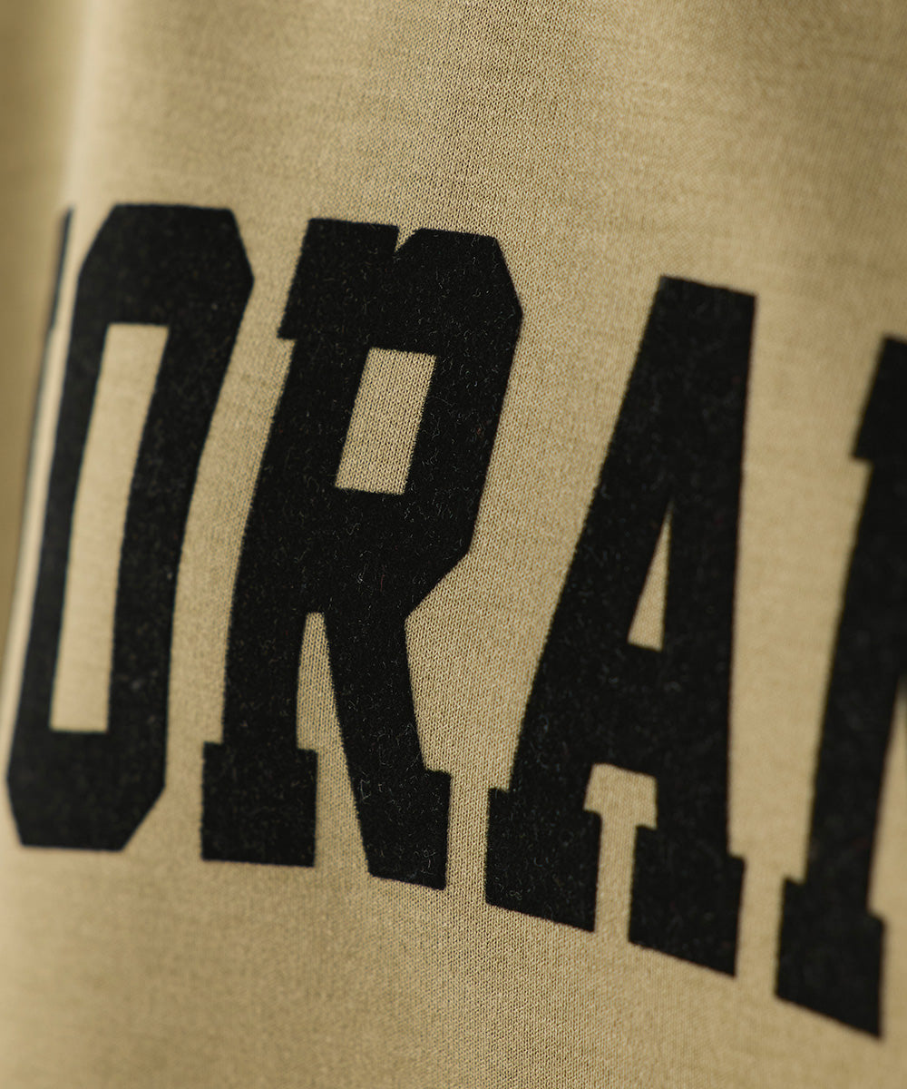 胸元にはフロッキープリントのロゴをあしらい、大人のカジュアルスタイルにさりげないアクセントをプラス。