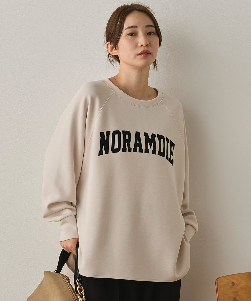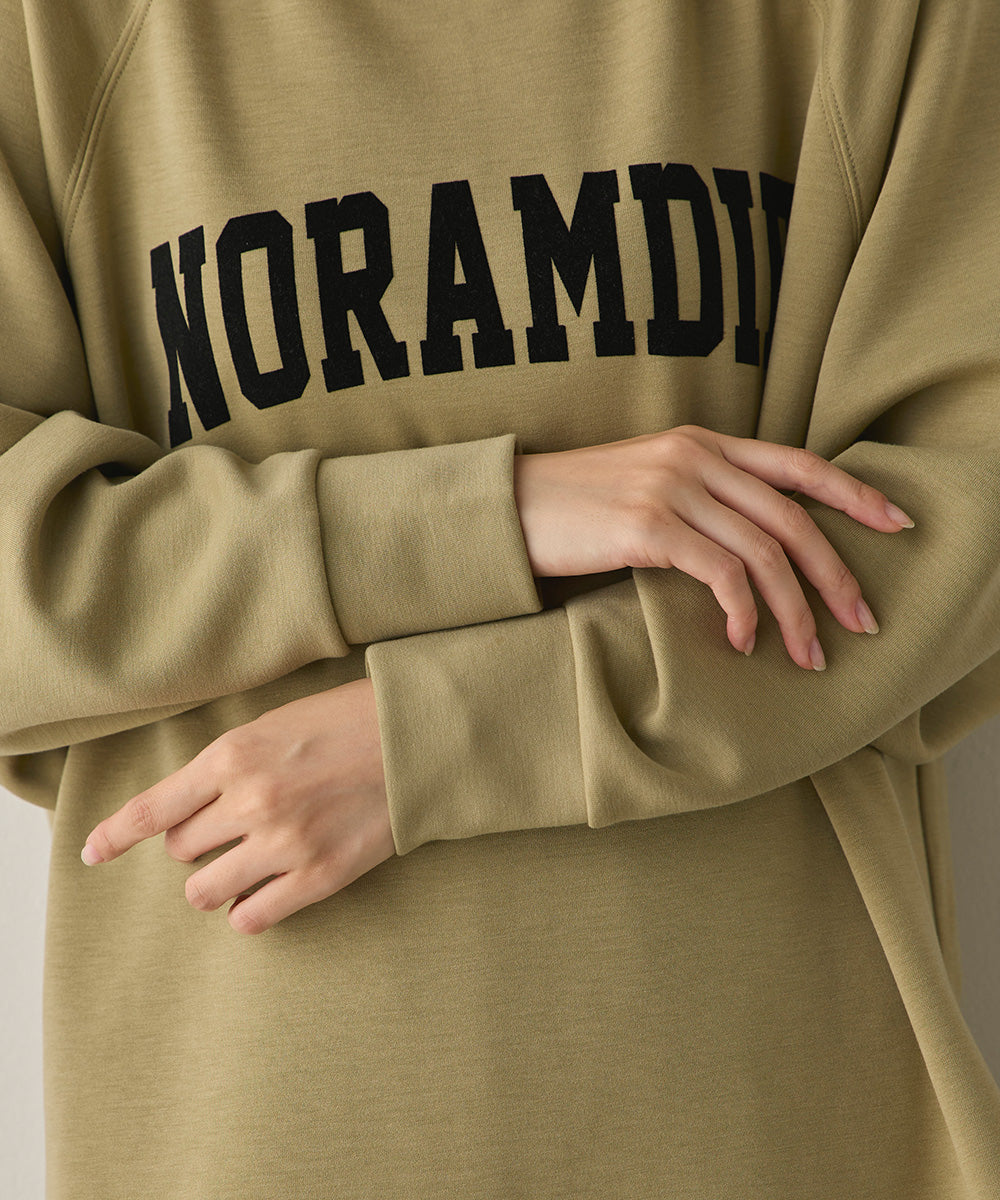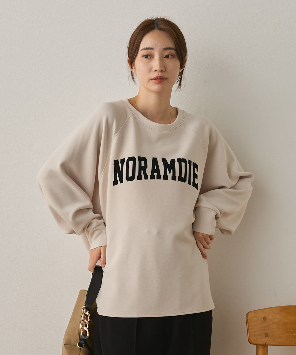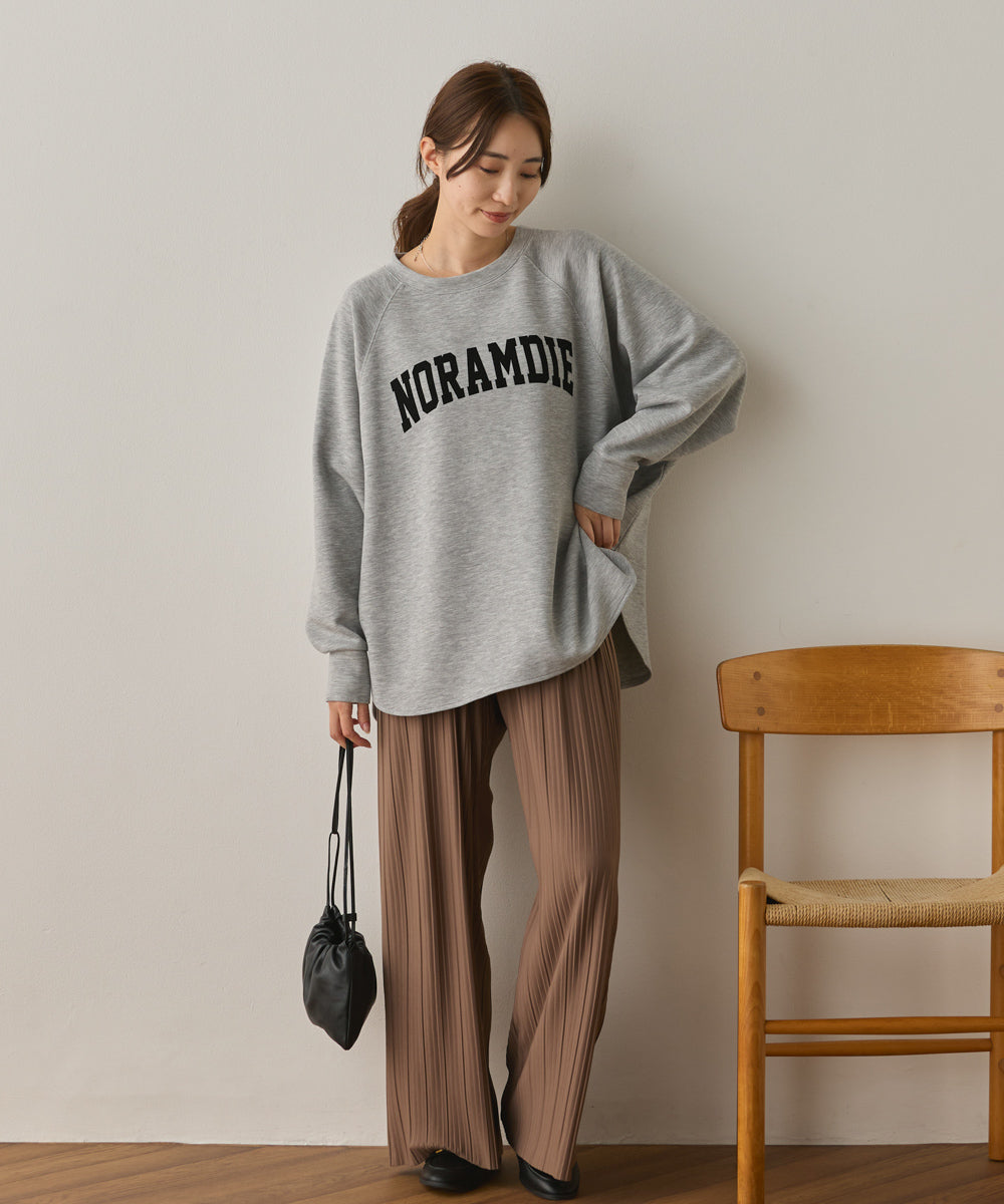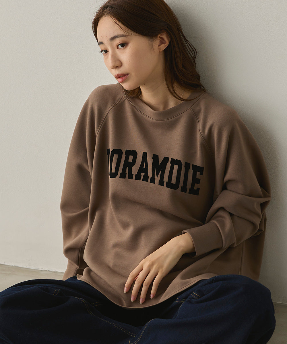 胸元にはフロッキープリントのロゴをあしらい、大人のカジュアルスタイルにさりげないアクセントをプラス。