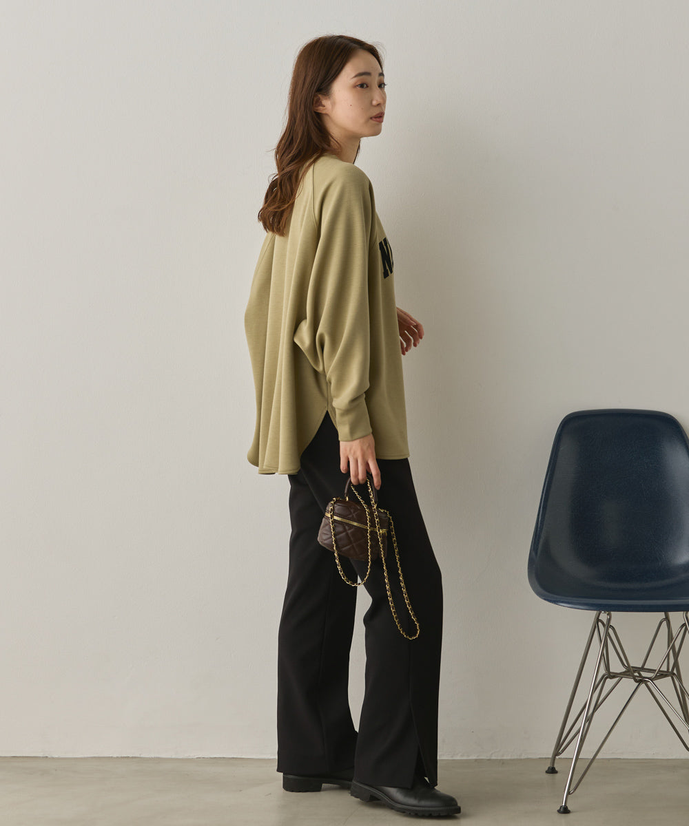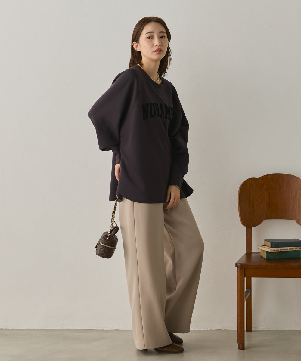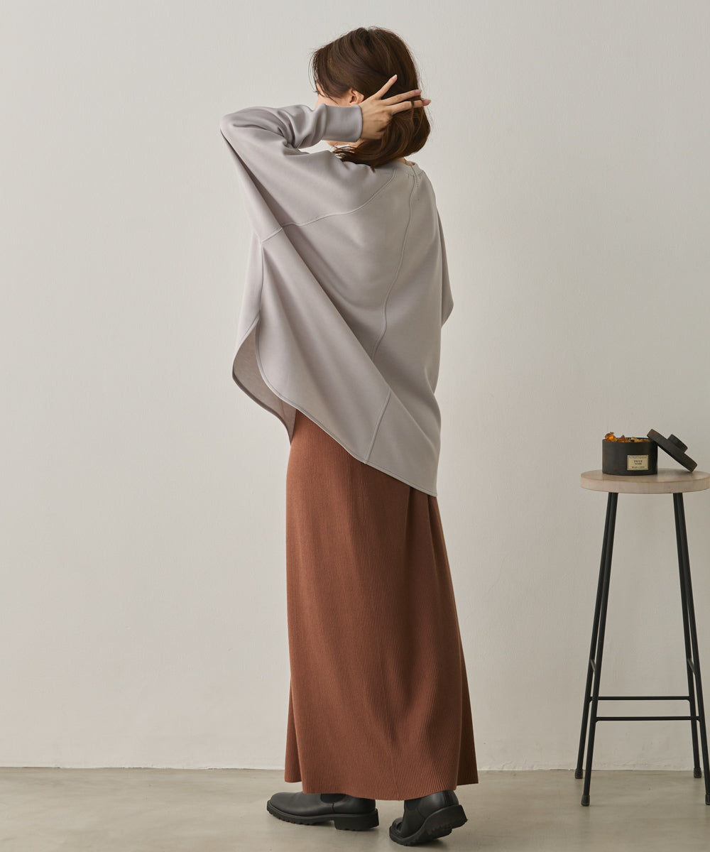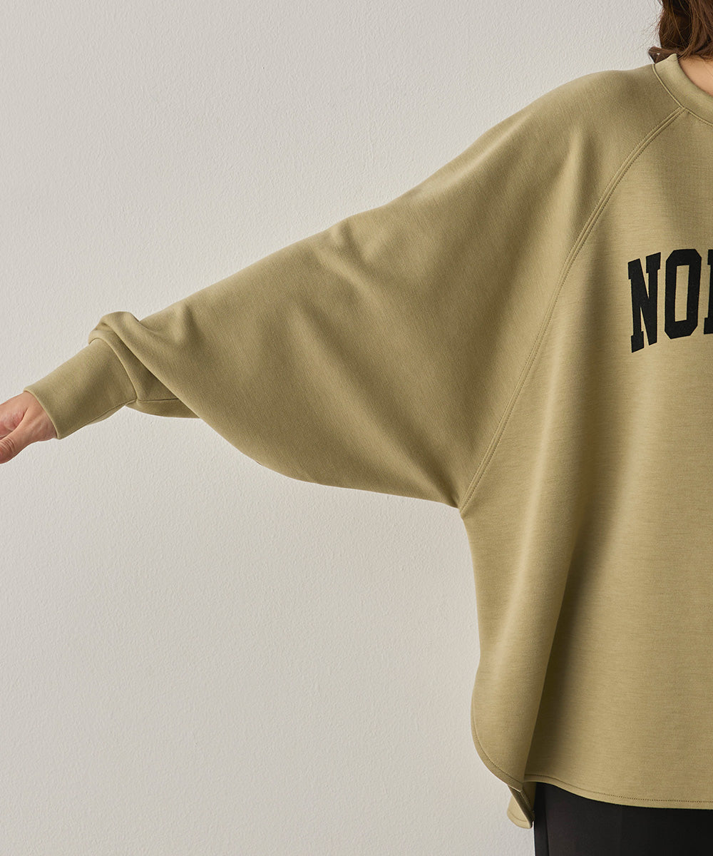 ラグランスリーブで肩まわりが動かしやすく、ゆったりした着心地ながらすっきりとした印象に。