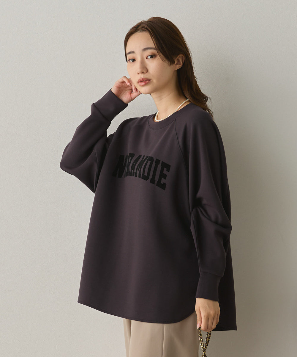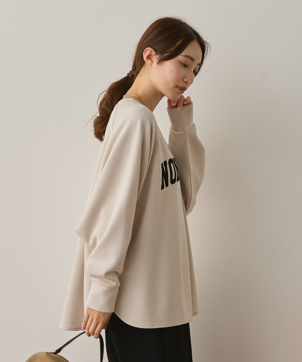 ソフトダンボールニットフロッキープリントドルマンプルオーバー[1325-6153]