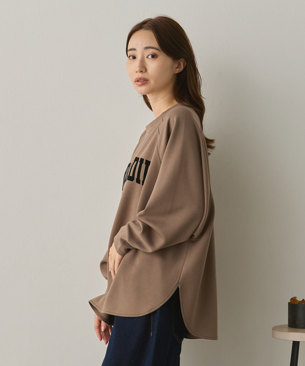 やわらかく程よい厚みのソフトダンボール素材を使用したラウンドヘムプルオーバー。
