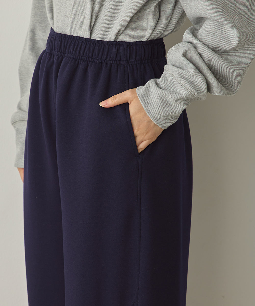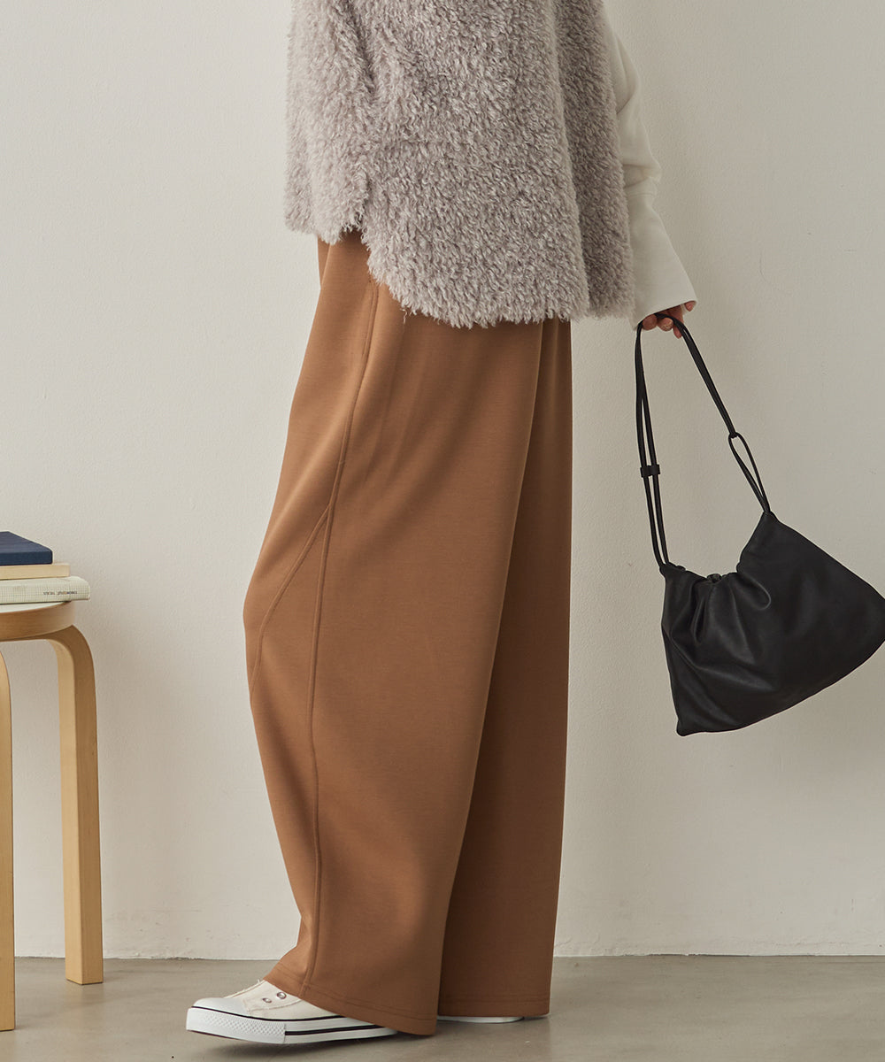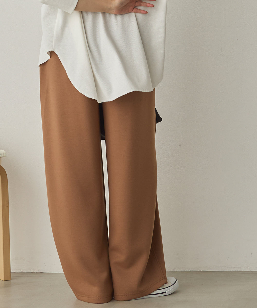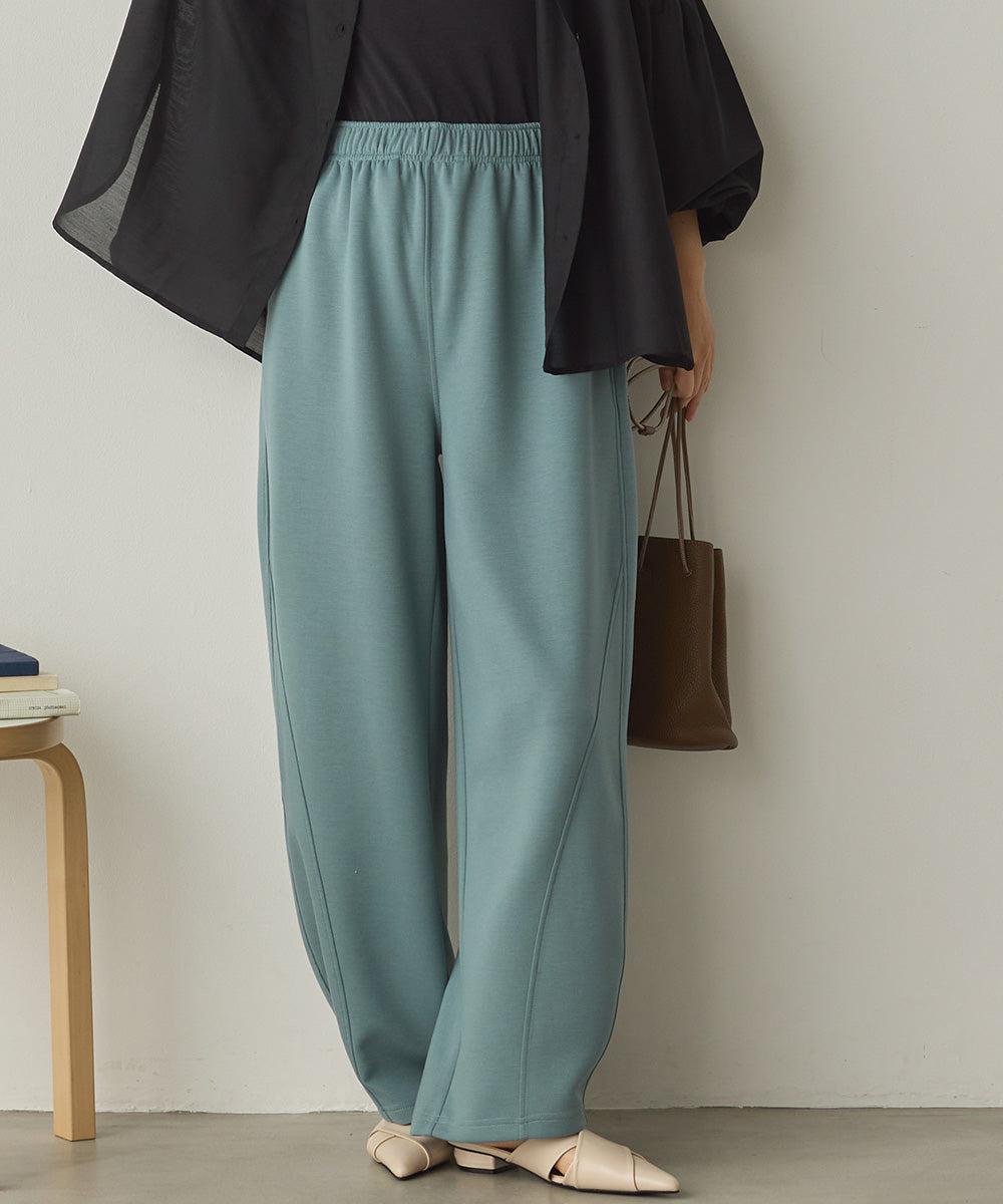 肉厚ながらもやわらかく、軽やかな穿き心地が魅力のダンボールニット素材を使用したカーブパンツ。
