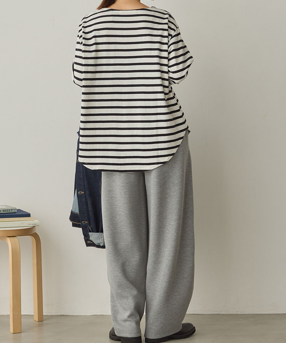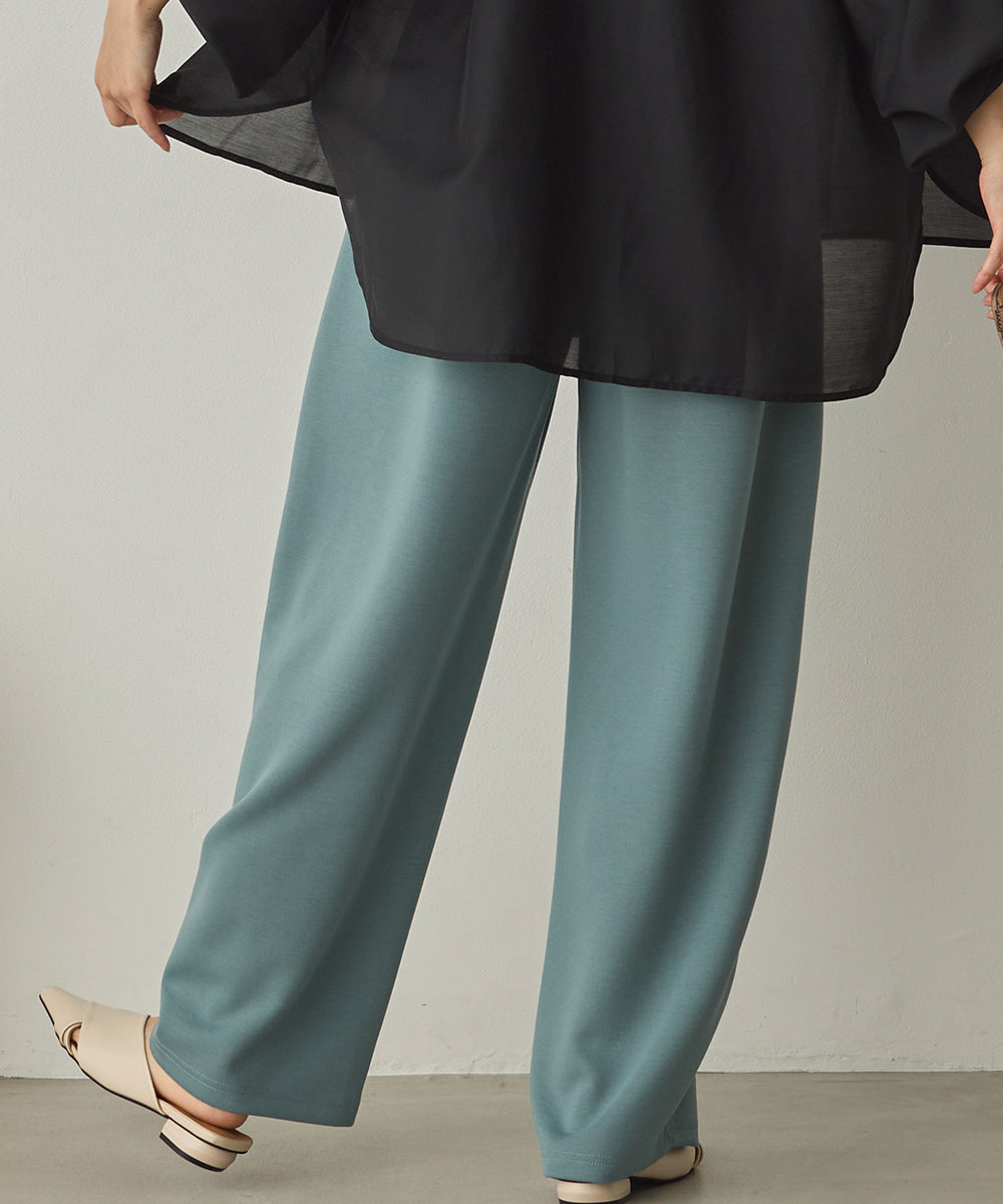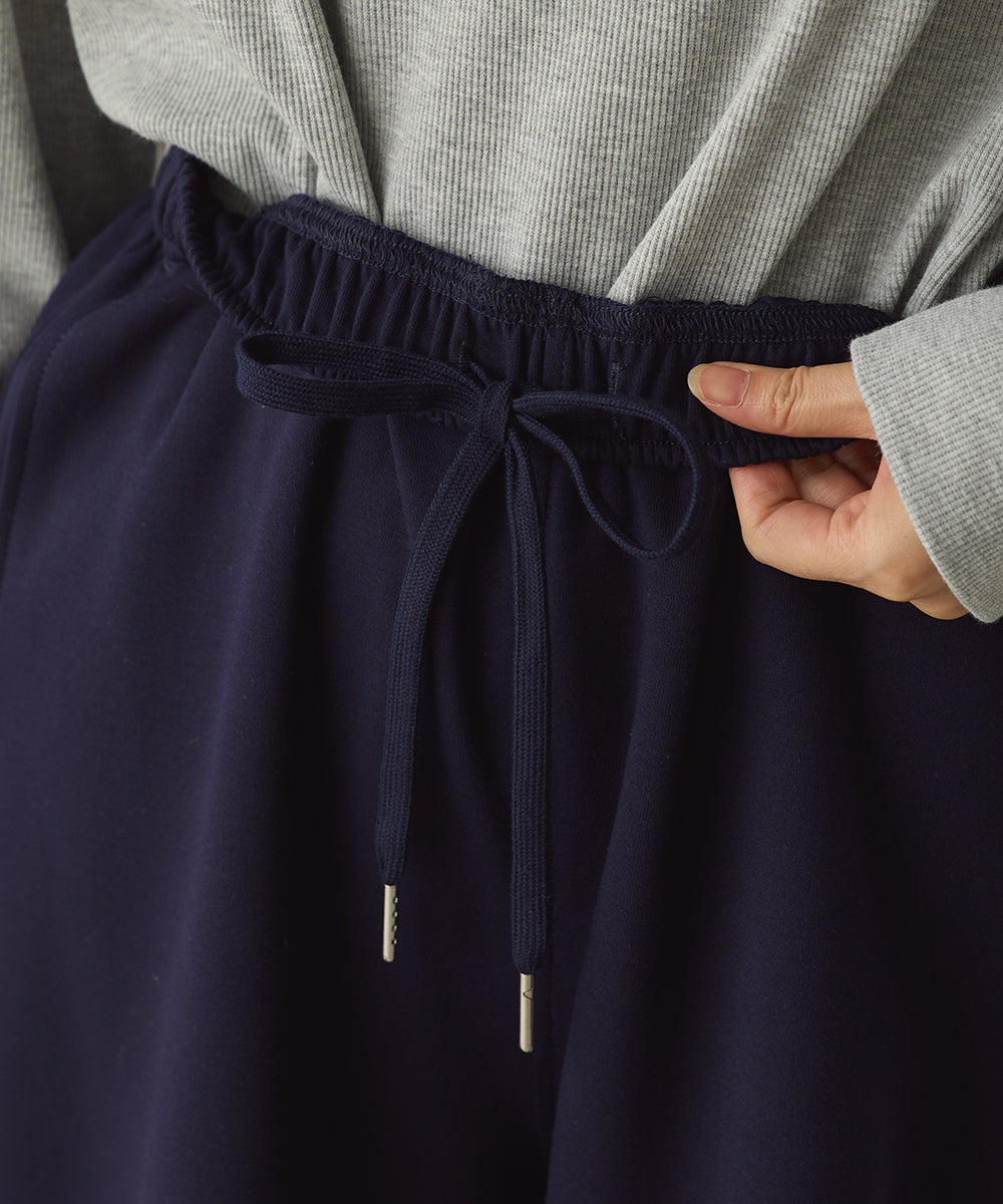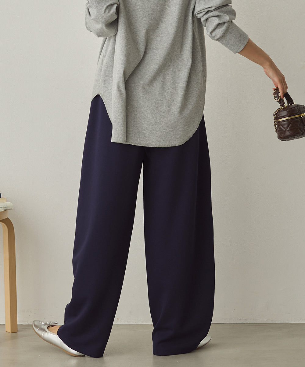ウエストは総ゴム仕様でラクな穿き心地を叶えつつ、すっきりとした見え感を実現。