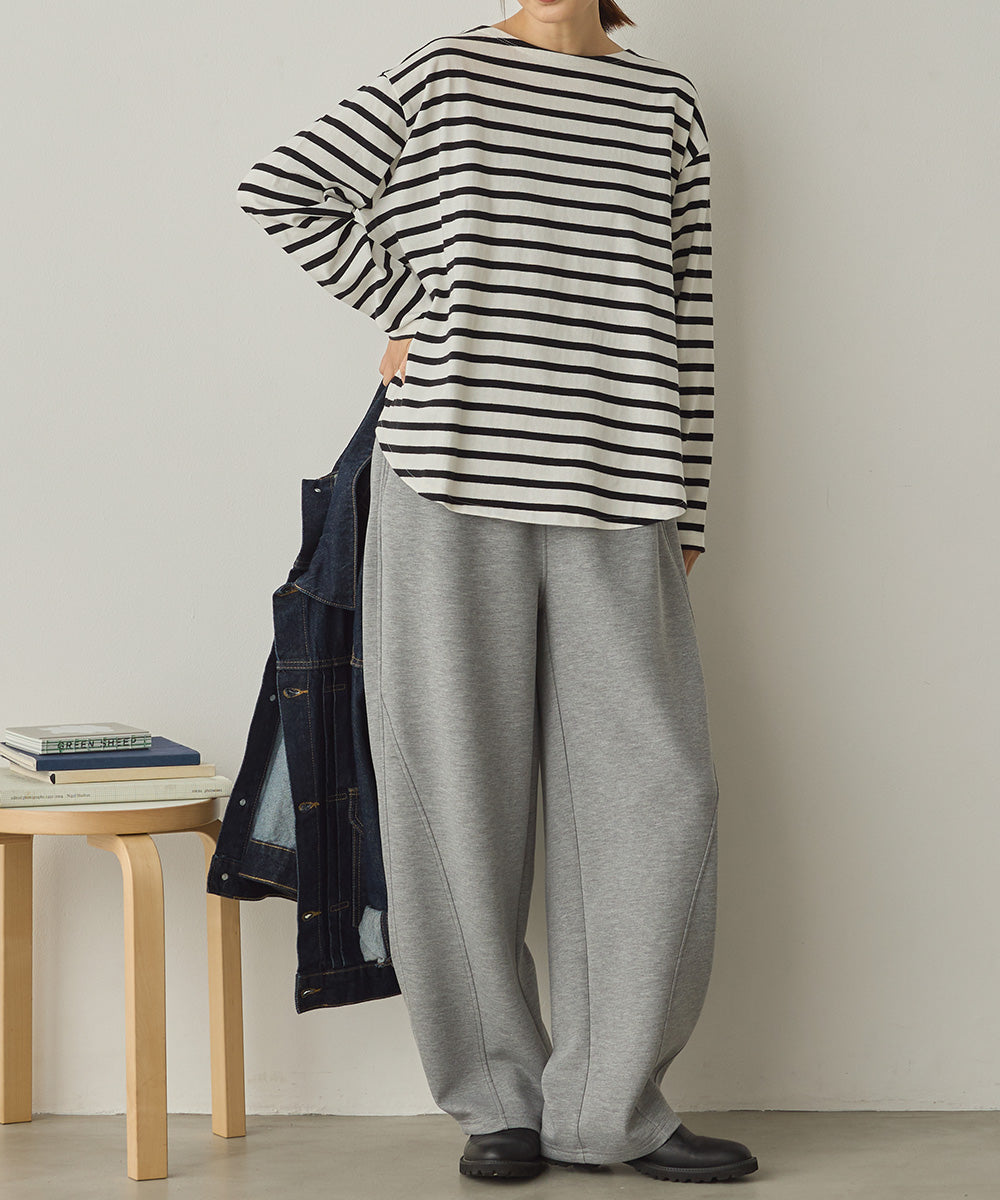 ダンボールニット切り替えカーブパンツ[1325-1014]