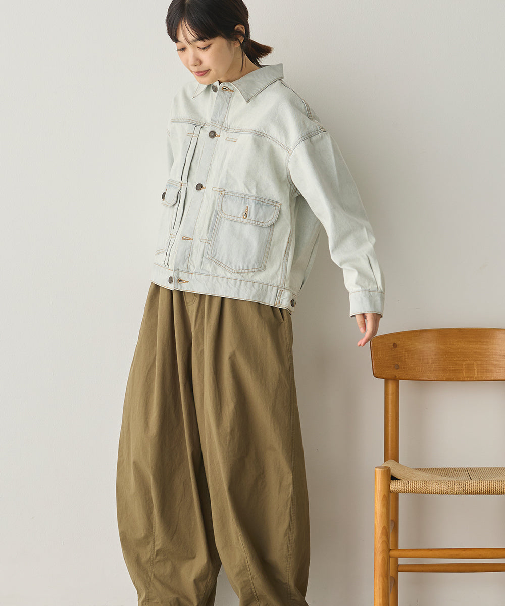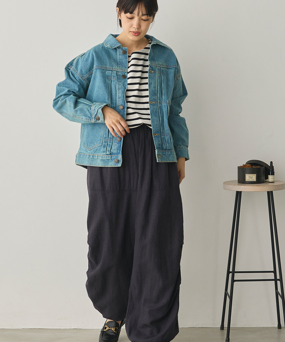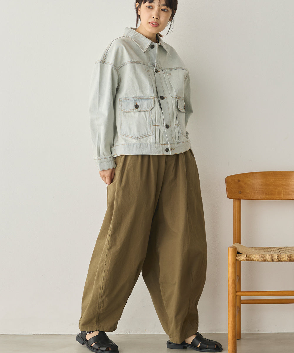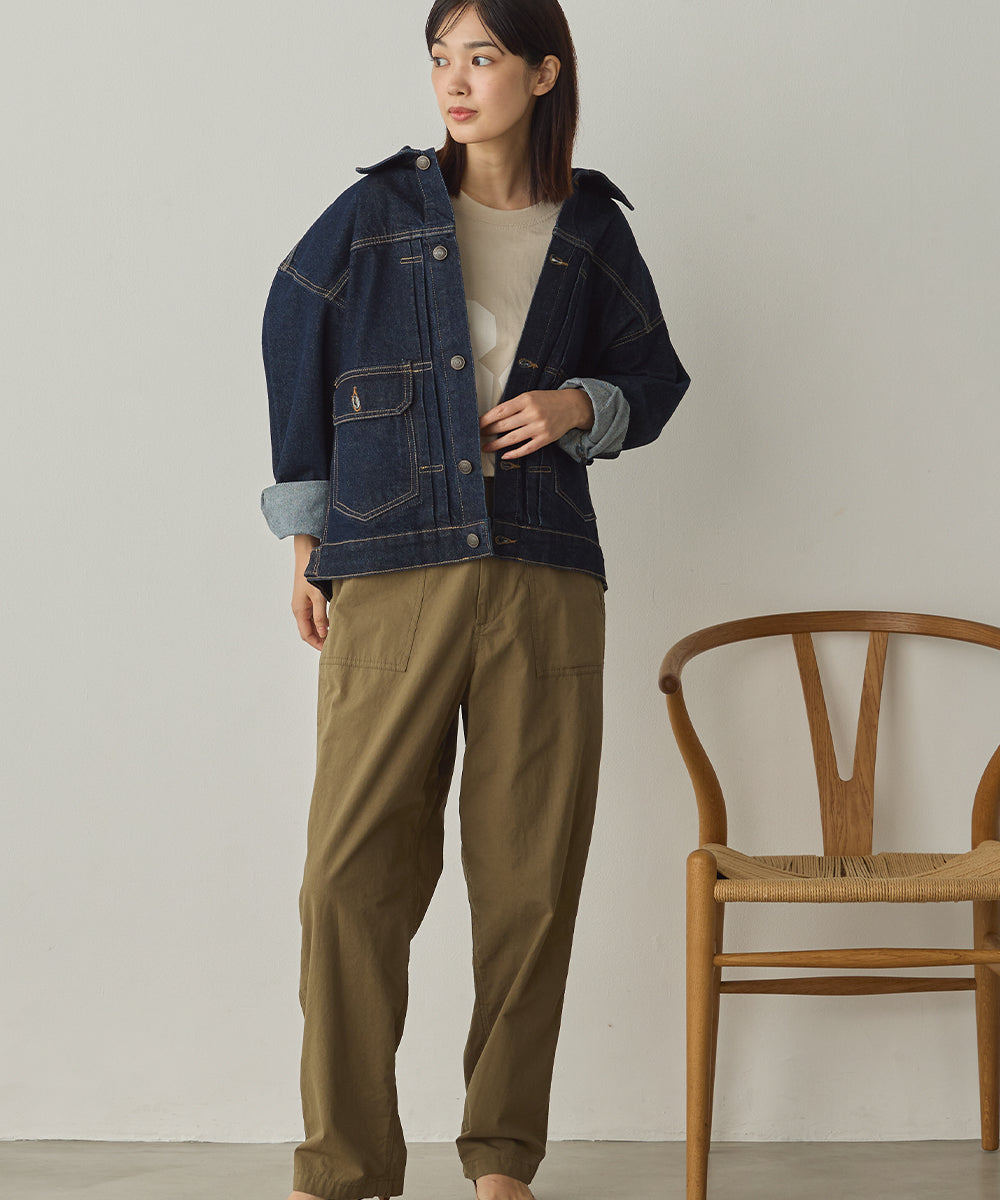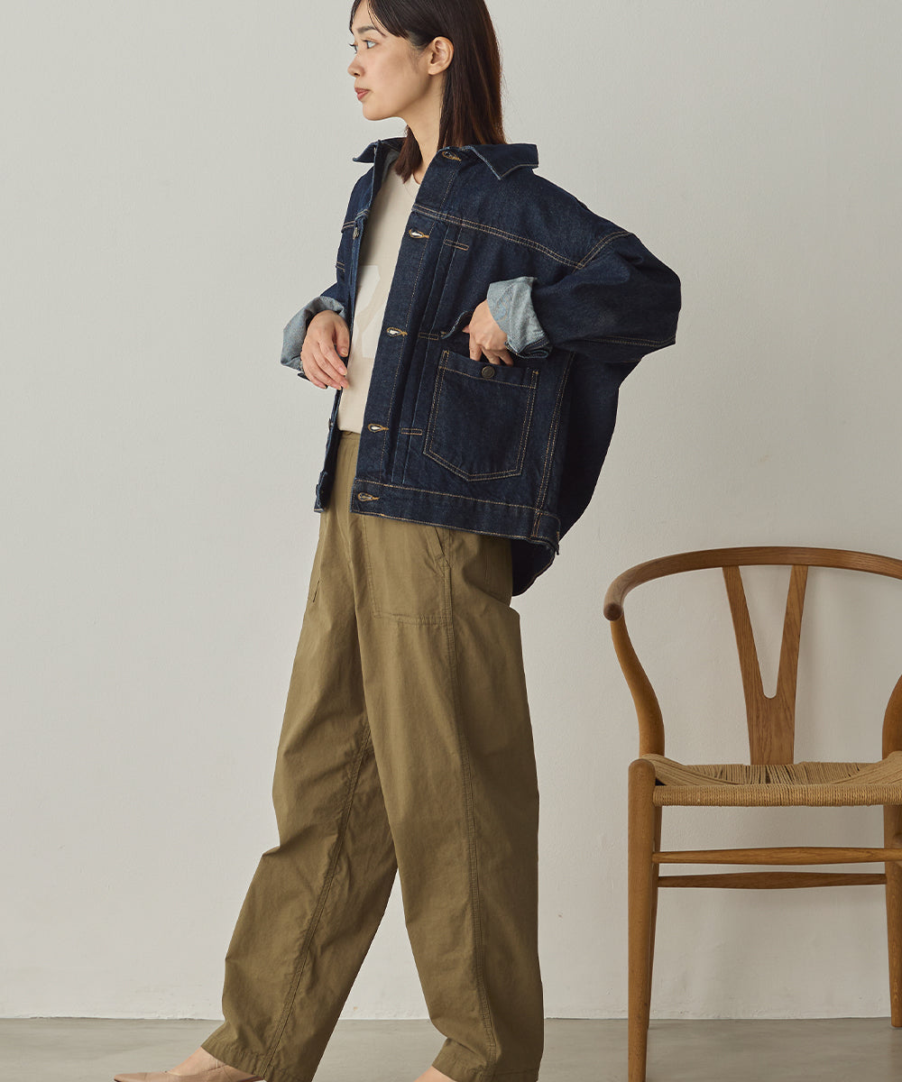 ゆったりとしたシルエットで、抜け感のあるスタイリングを叶えながらも、 丈夫な素材感で長く愛用いただける1枚です。