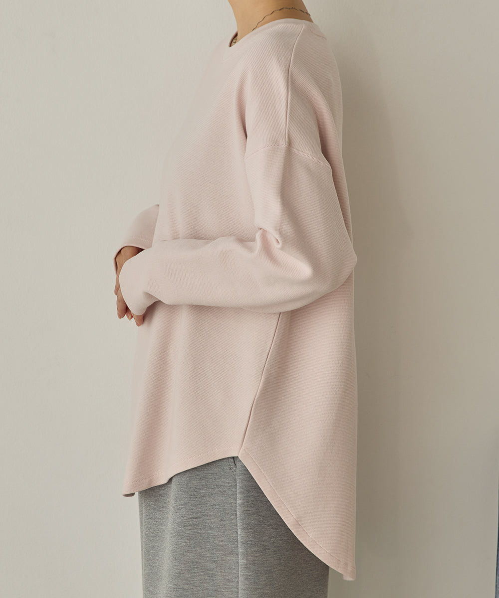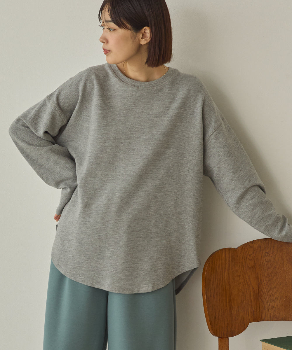 肉厚ながらやわらかく、心地よい着用感が魅力の リップルダブルフェイス裾ラウンドプルオーバー。