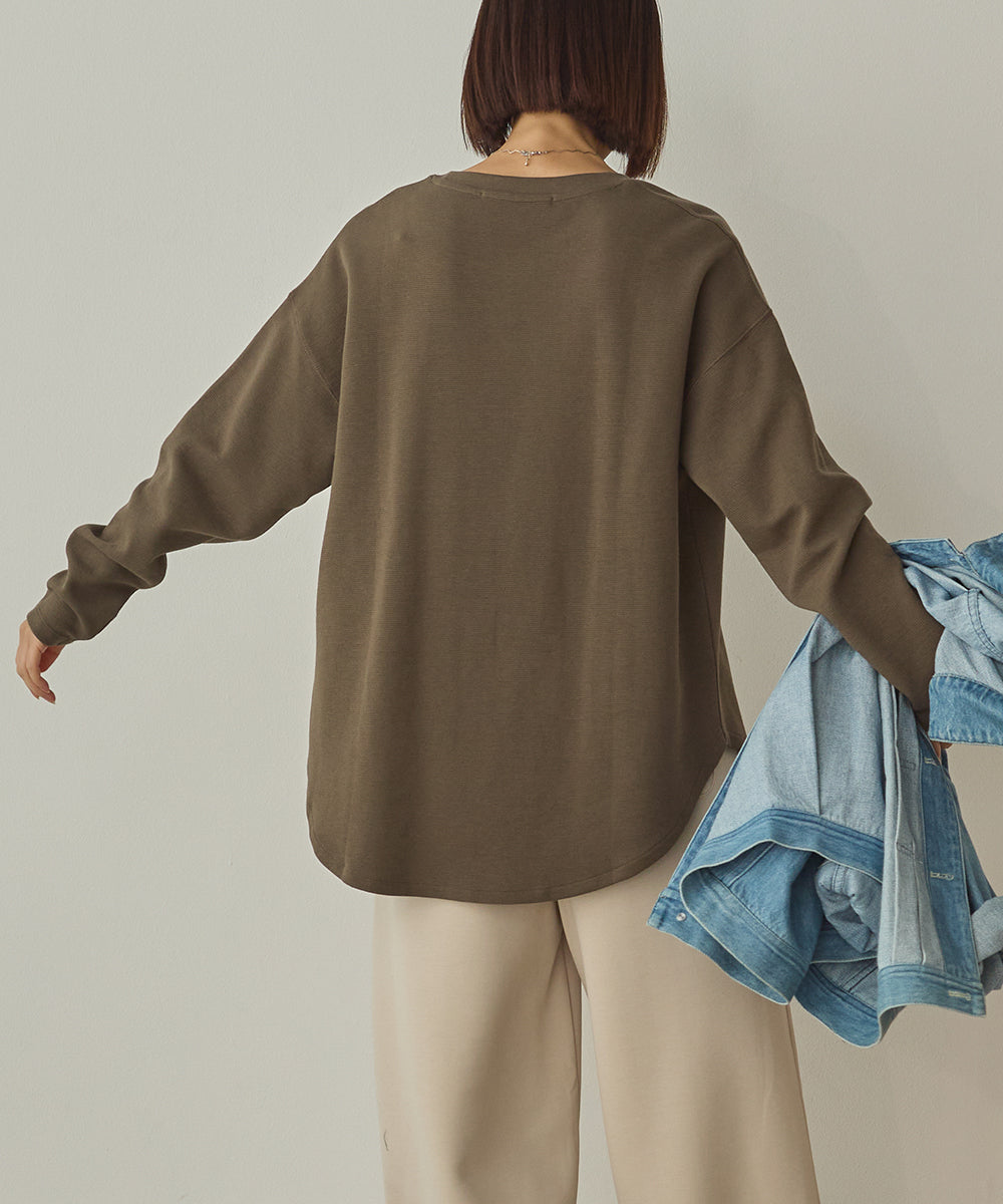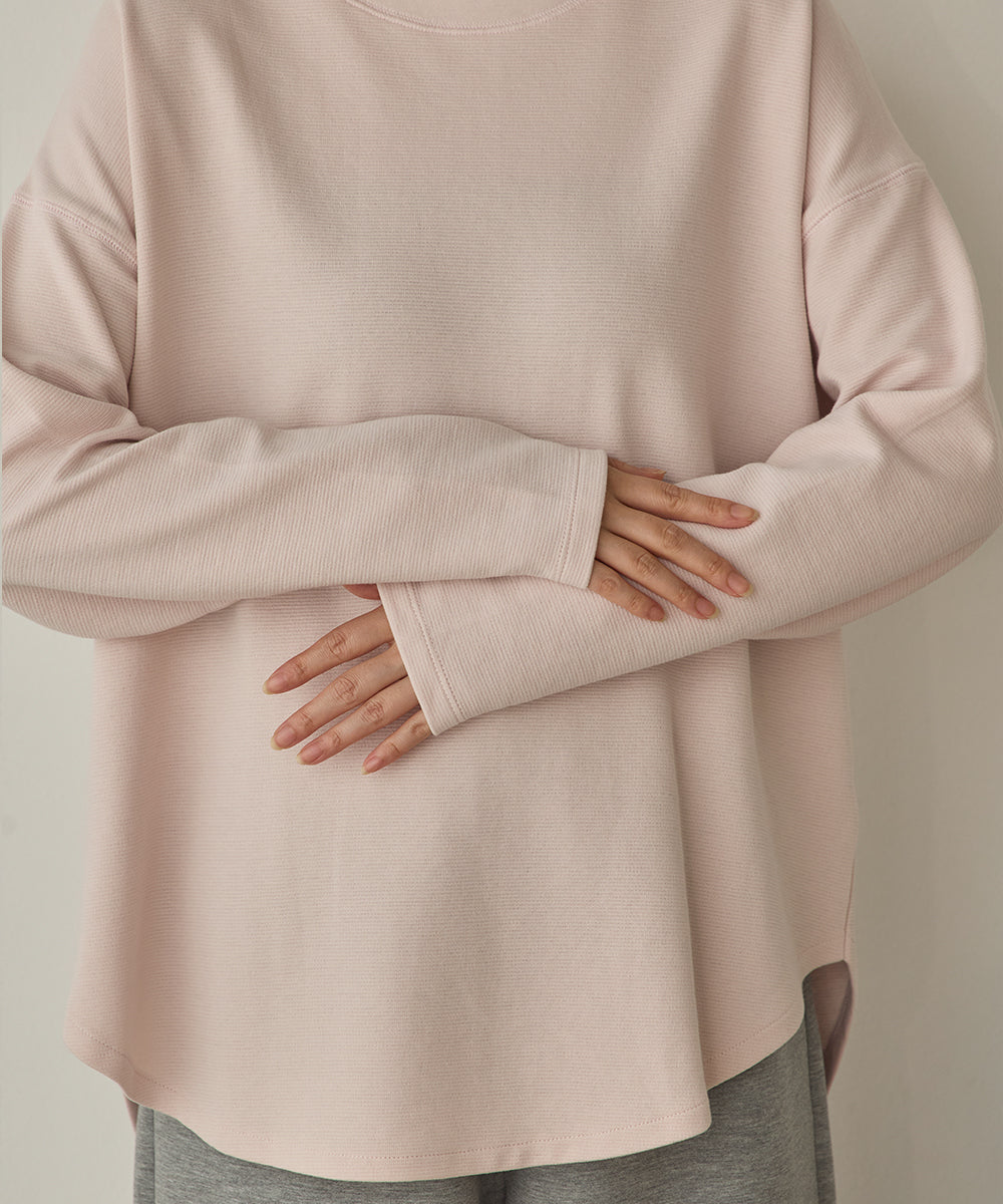 リップルダブルフェイス裾ラウンド長袖Tシャツ[1325-6141]