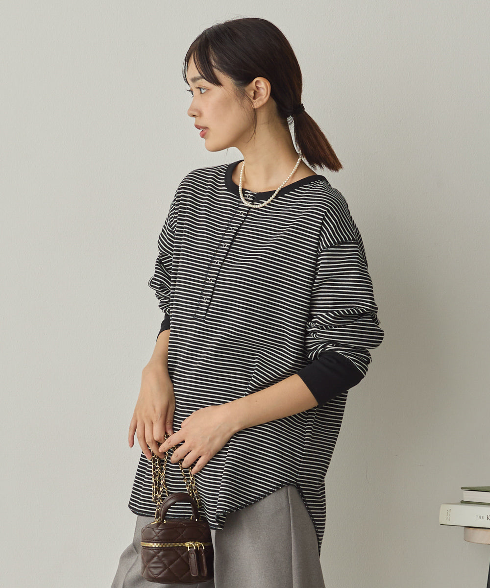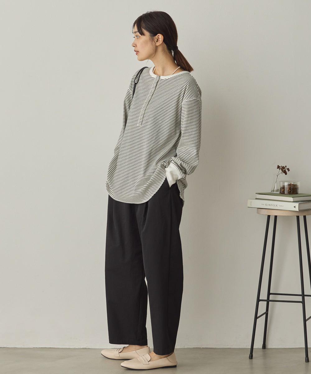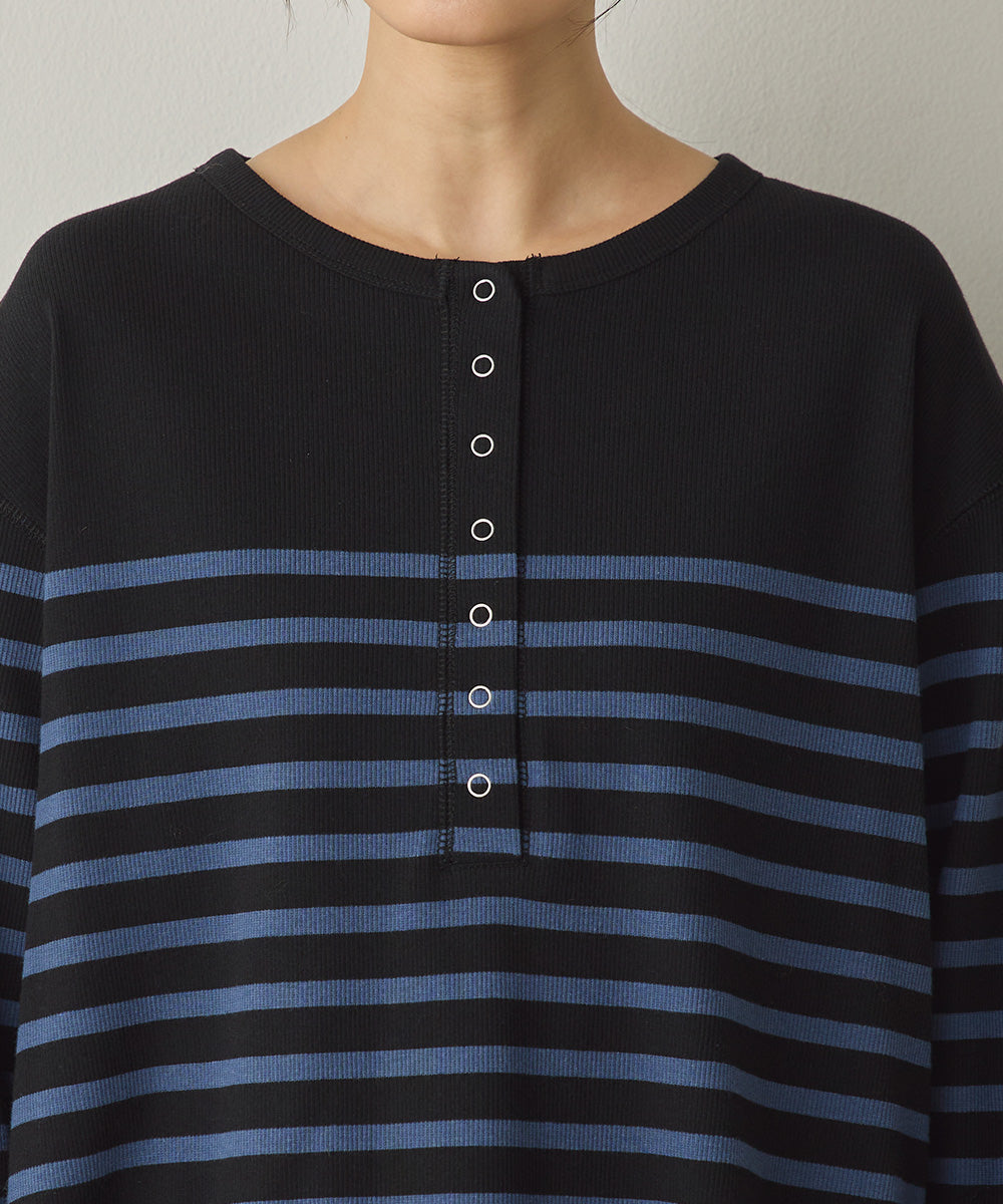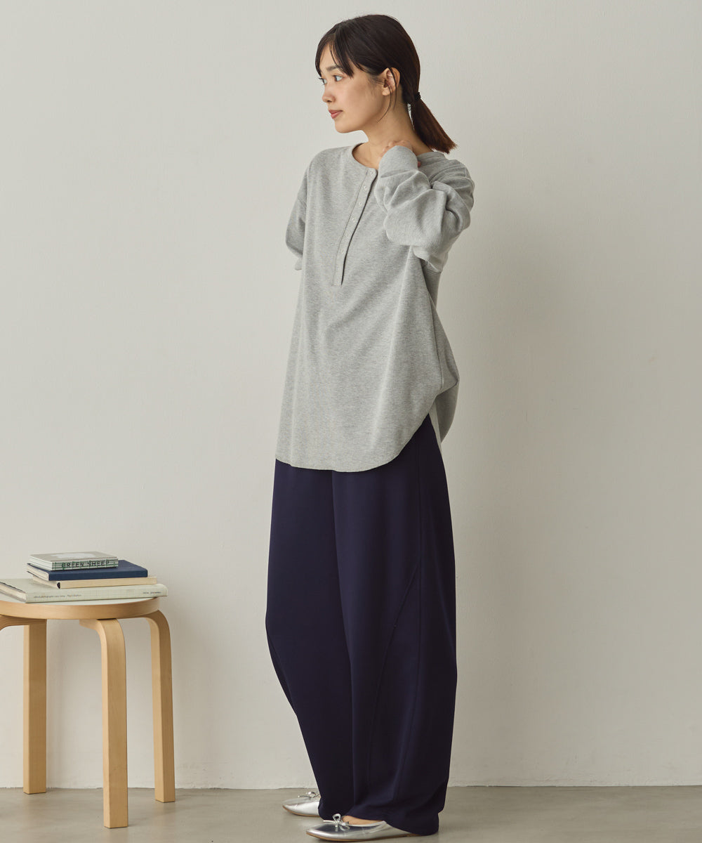 程よい厚みのストレッチリブ素材を使用したヘンリーネックプルオーバー。