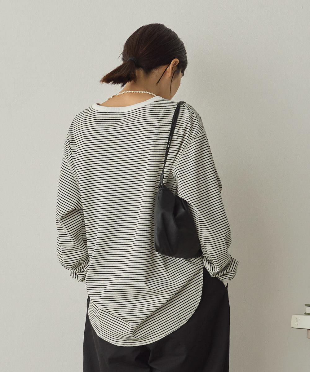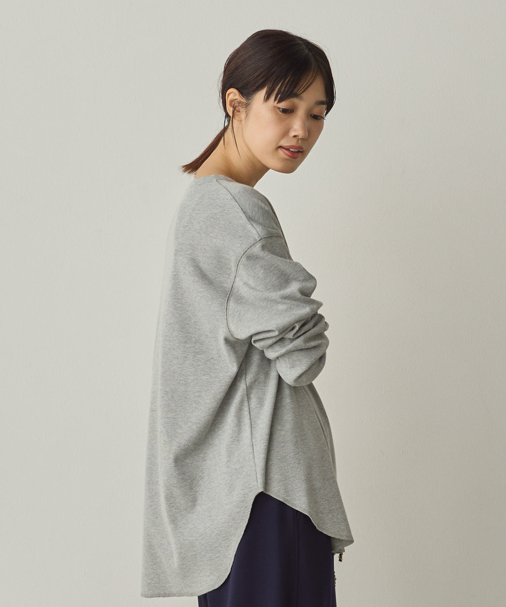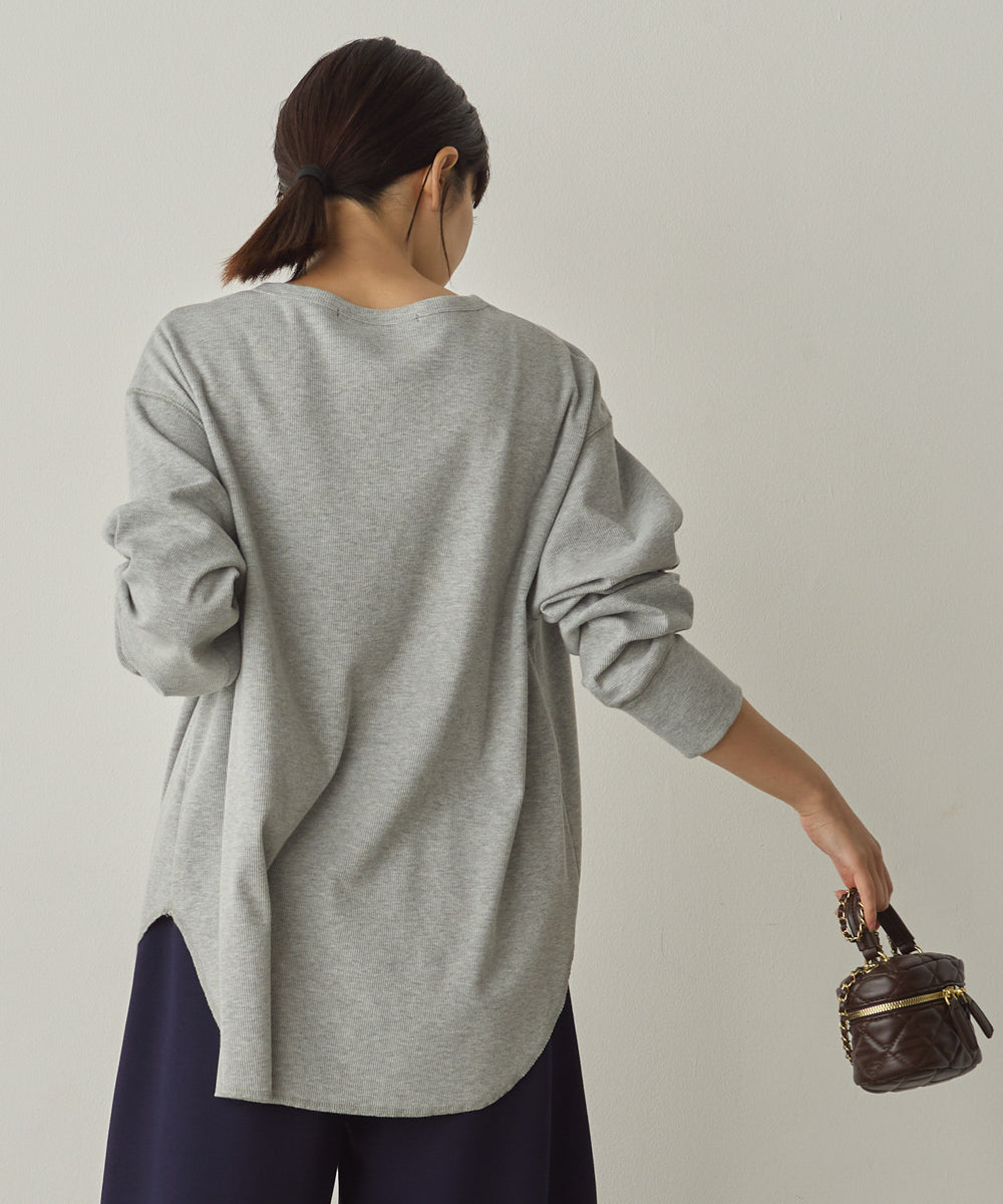 伸縮性があり着心地抜群で、重ね着はもちろん1枚でもサマになる優秀トップスです。