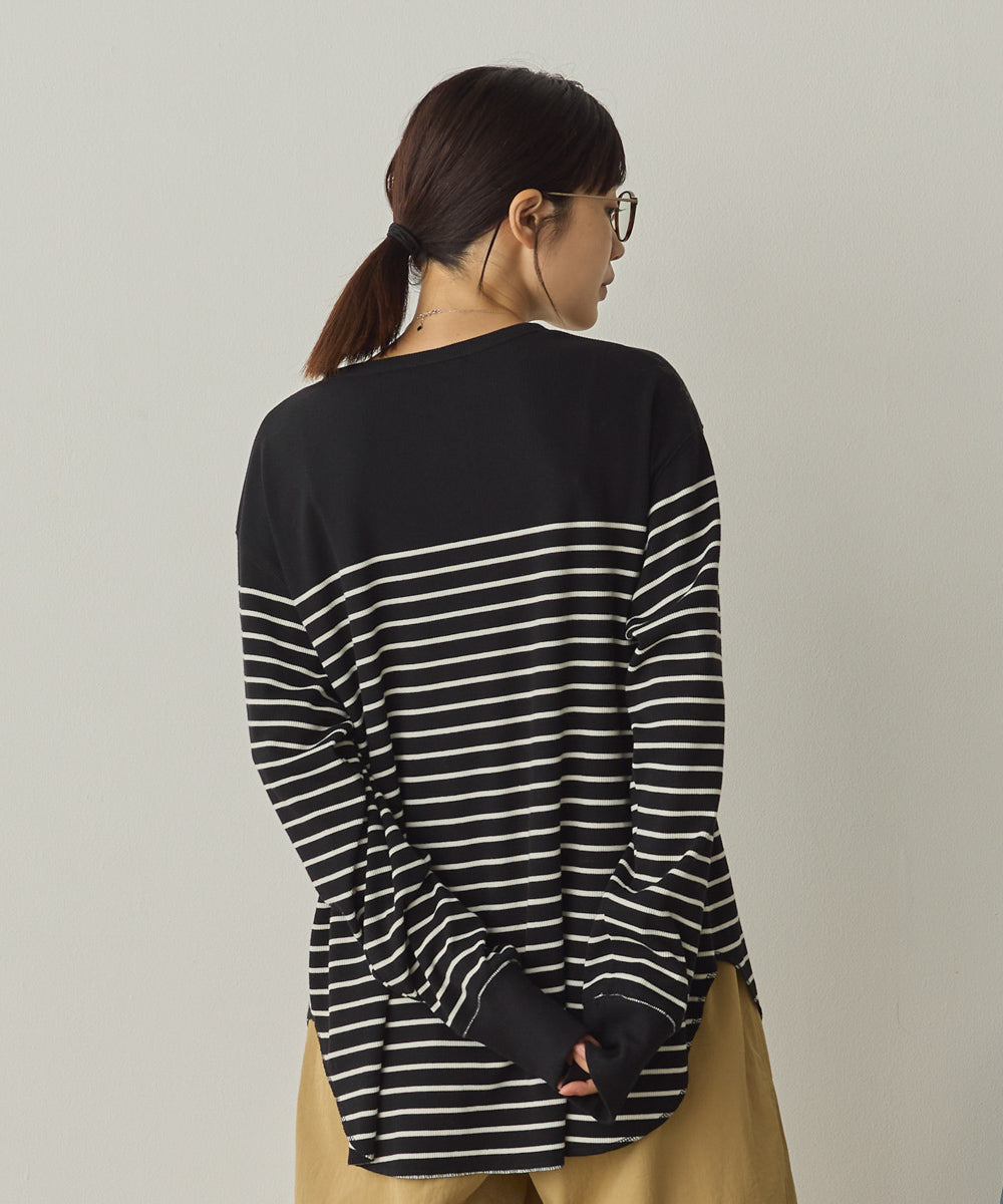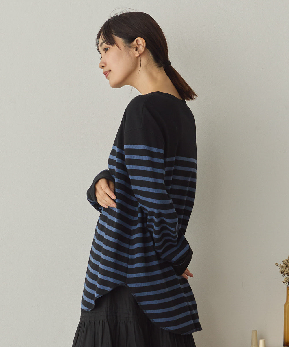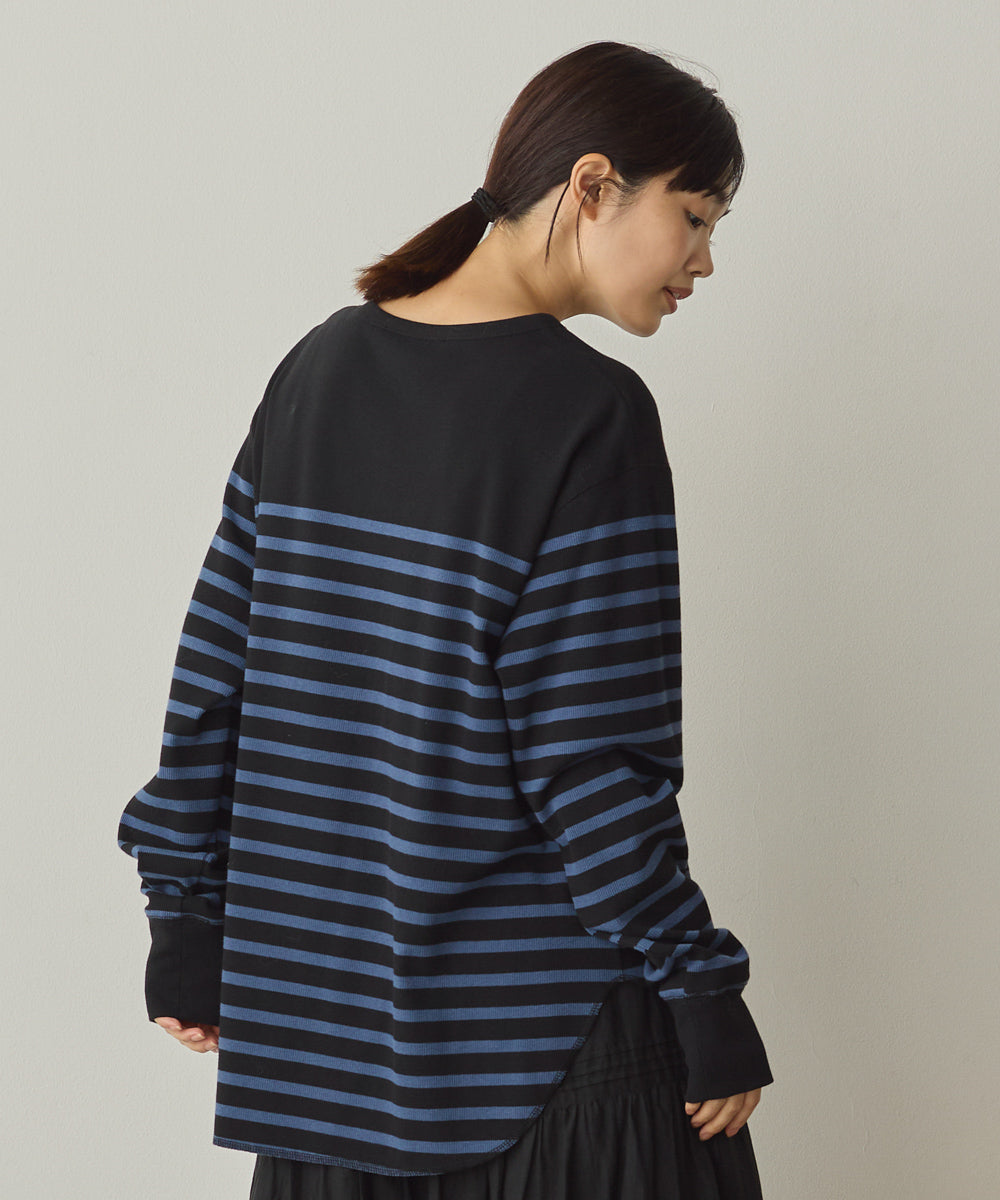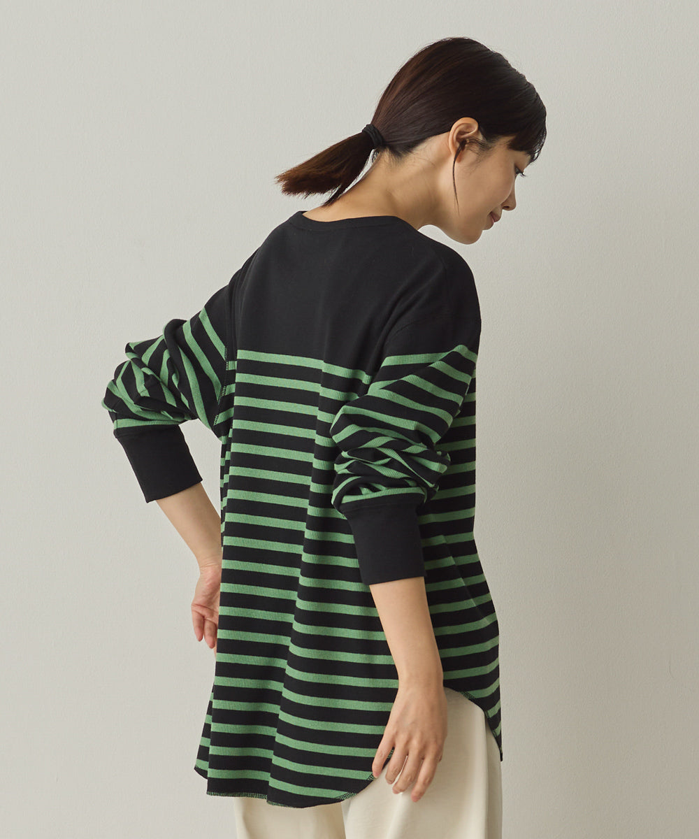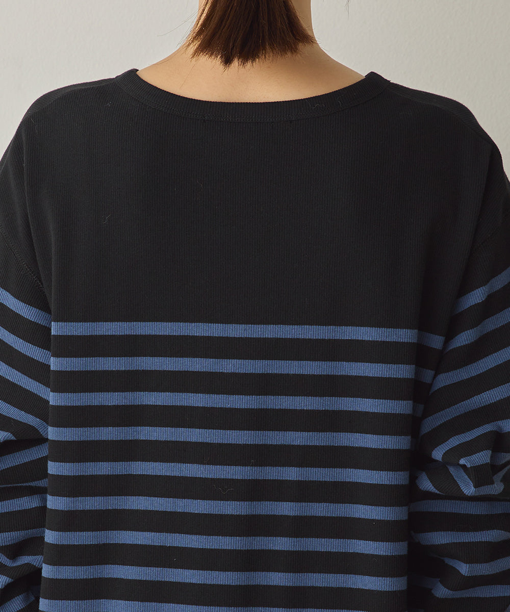 ※こちらの商品のボーダーは写真はボーダーになっておりますが、本生産分は無地で袖口リブと同色に変更になります。