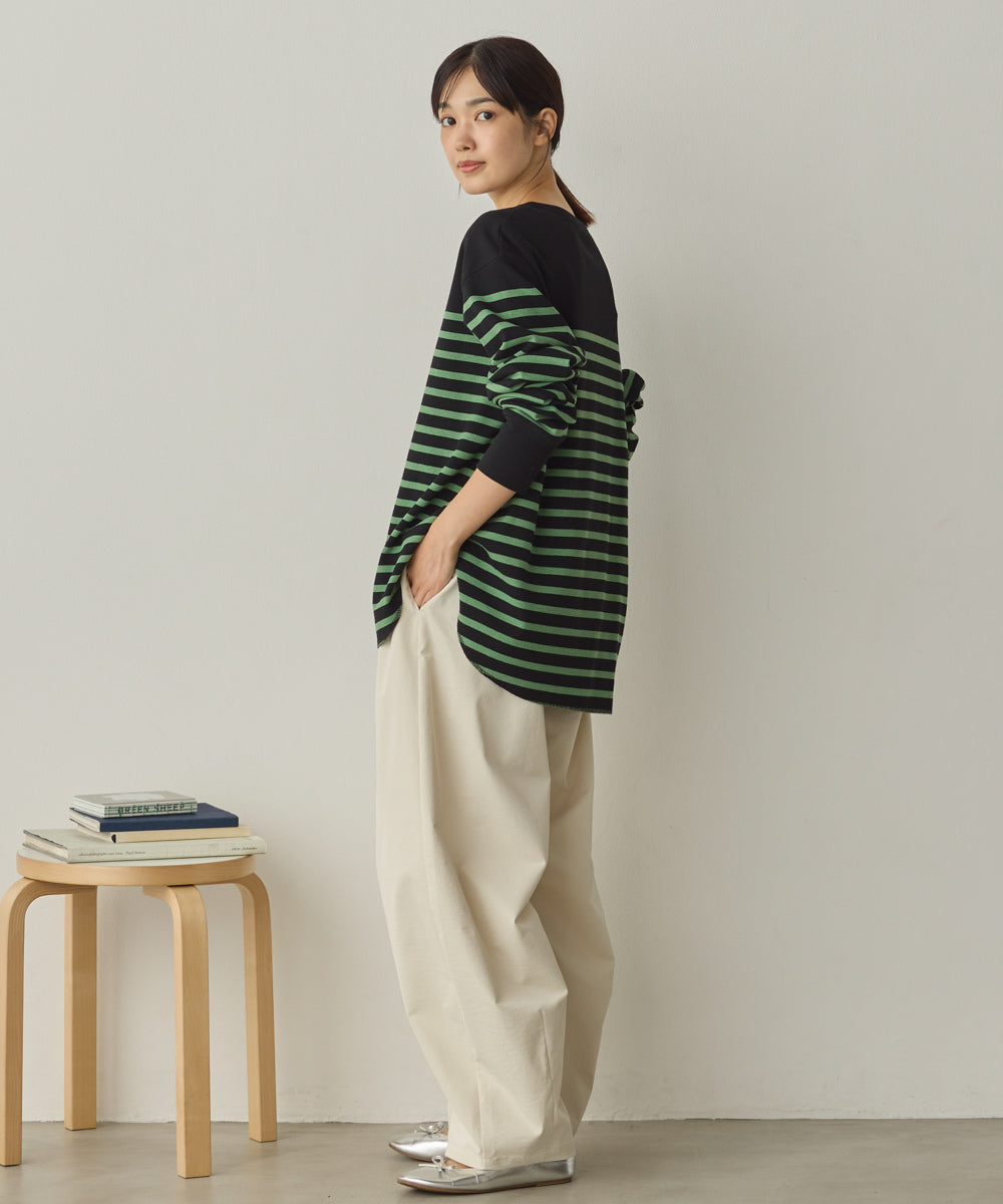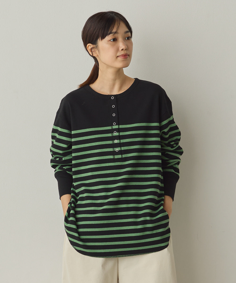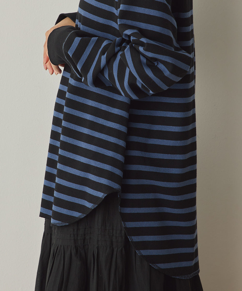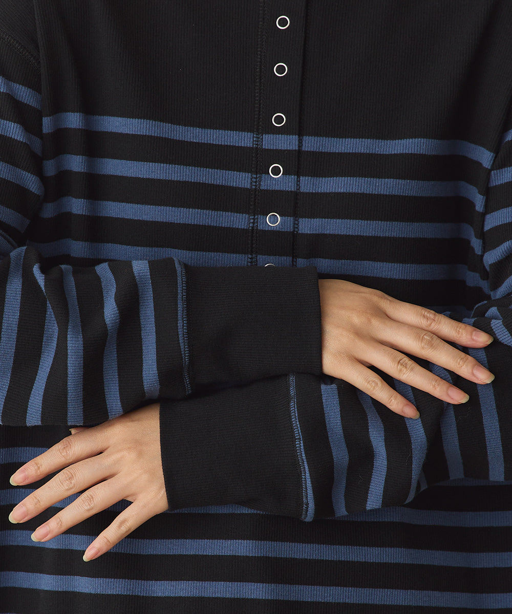 ※こちらの商品のボーダーは写真はボーダーになっておりますが、本生産分は無地で袖口リブと同色に変更になります。
