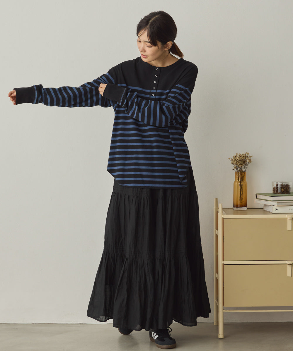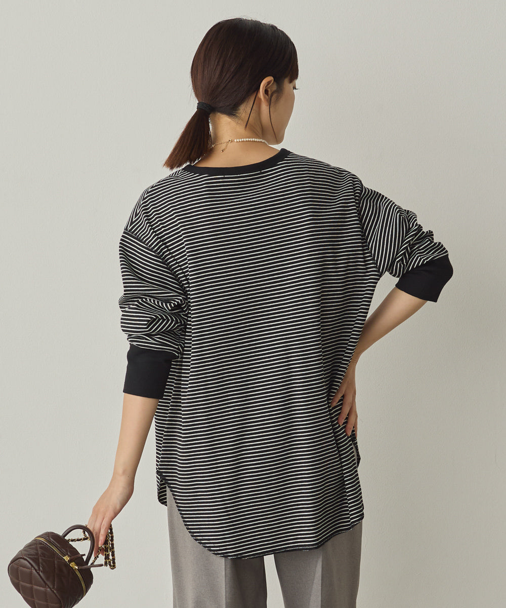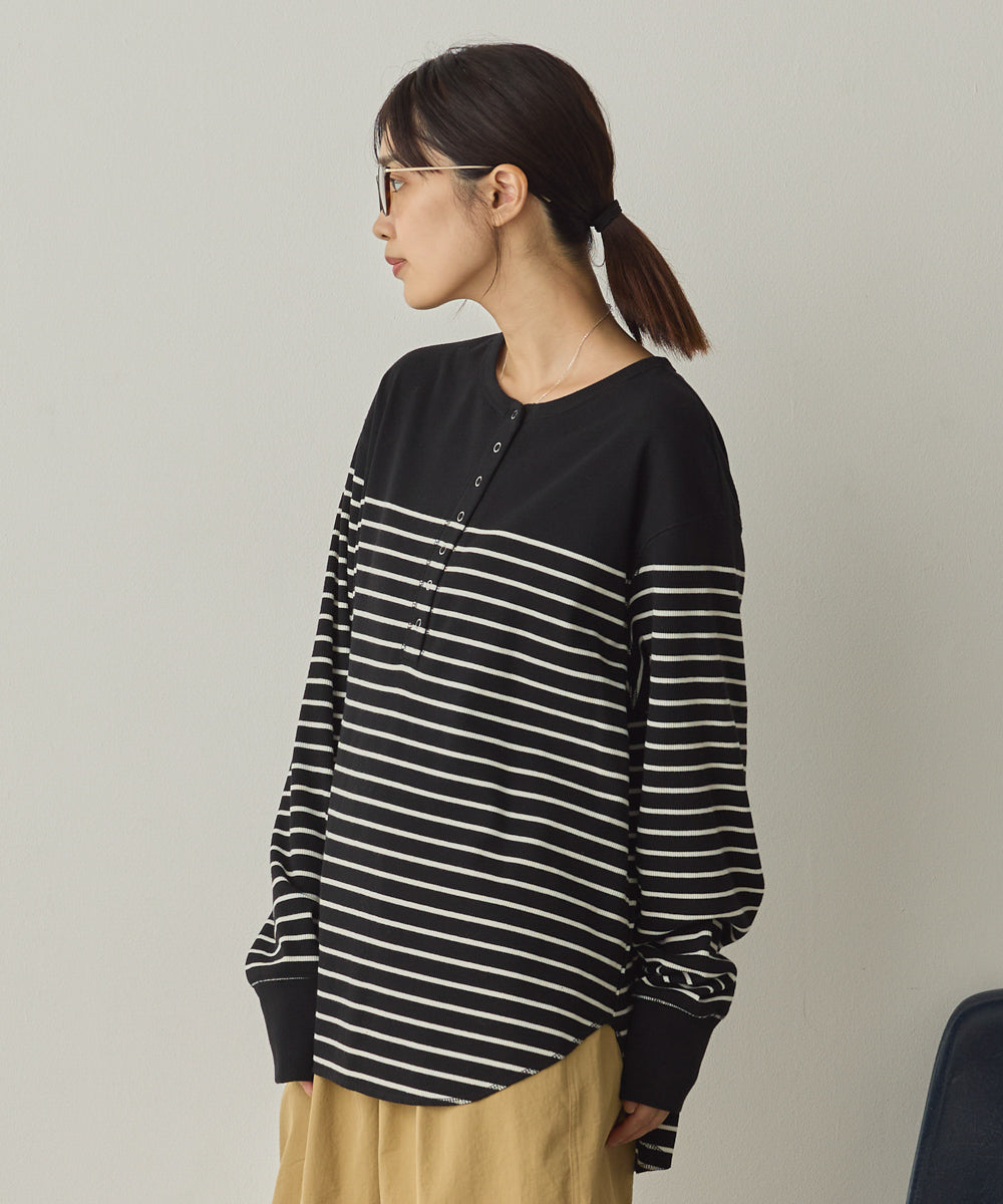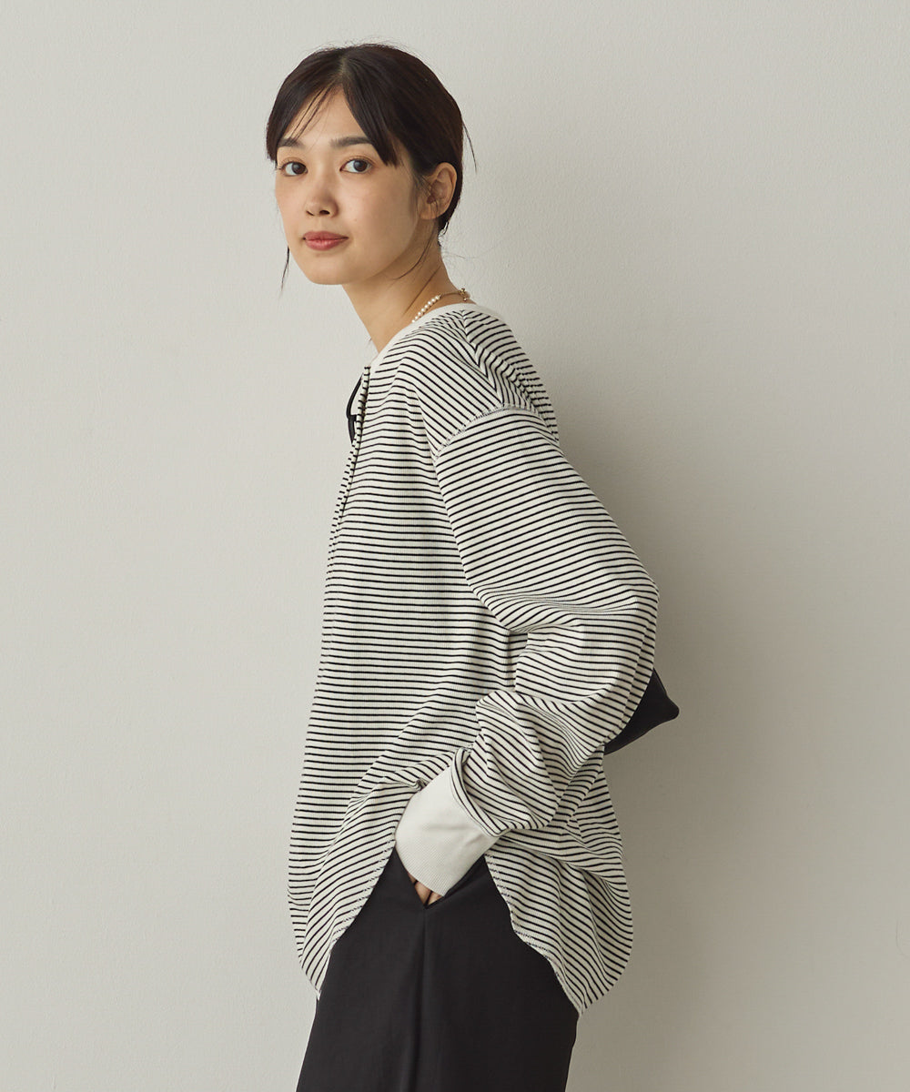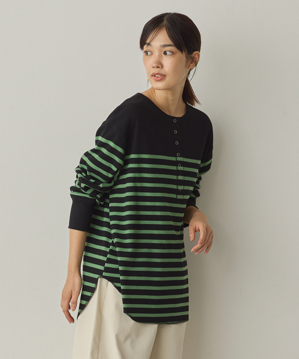 ※こちらの商品のボーダーは写真はボーダーになっておりますが、本生産分は無地で袖口リブと同色に変更になります。