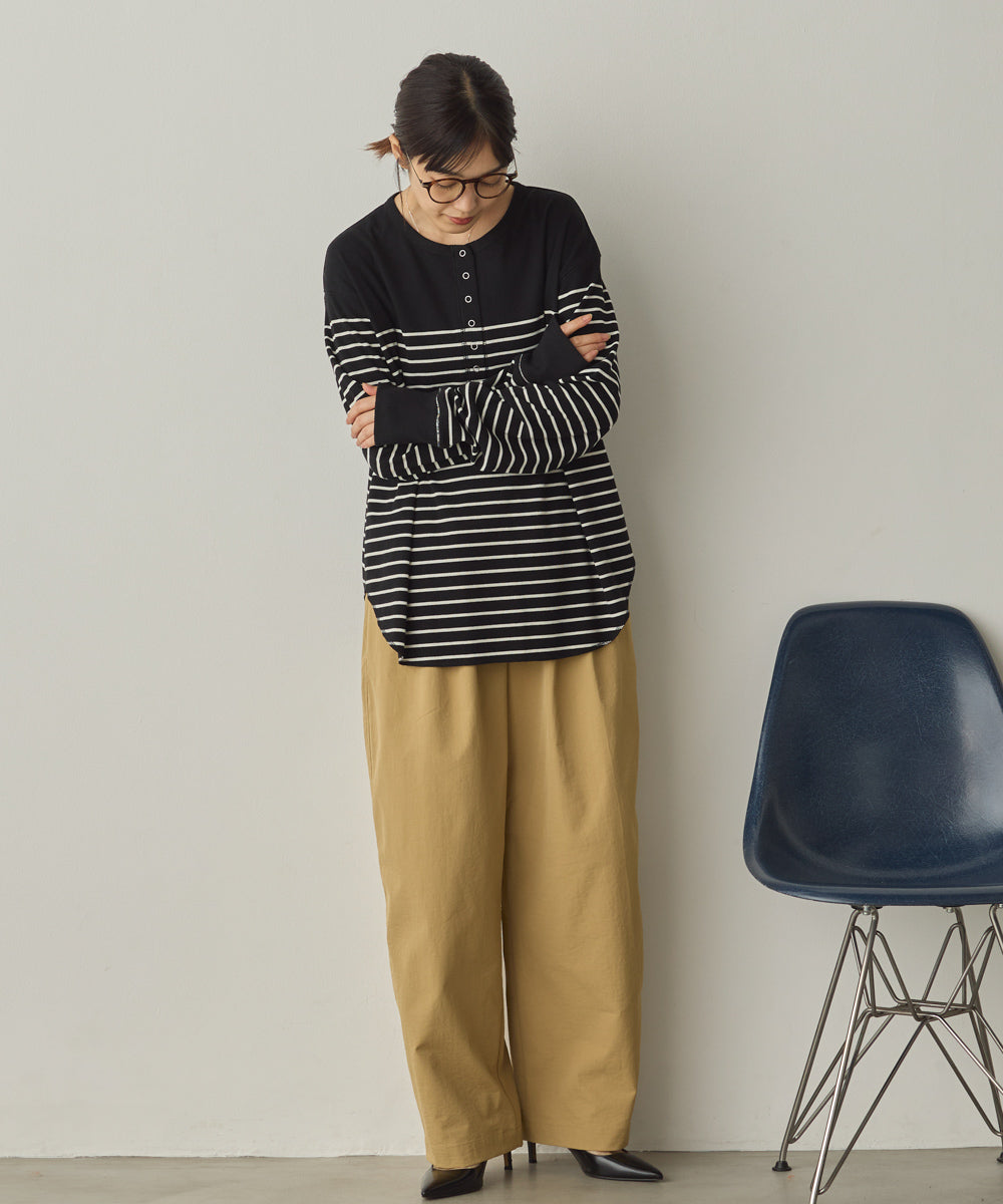 程よいゆとりのあるサイズ感で、リラックスしながらもすっきりとした印象を演出します。