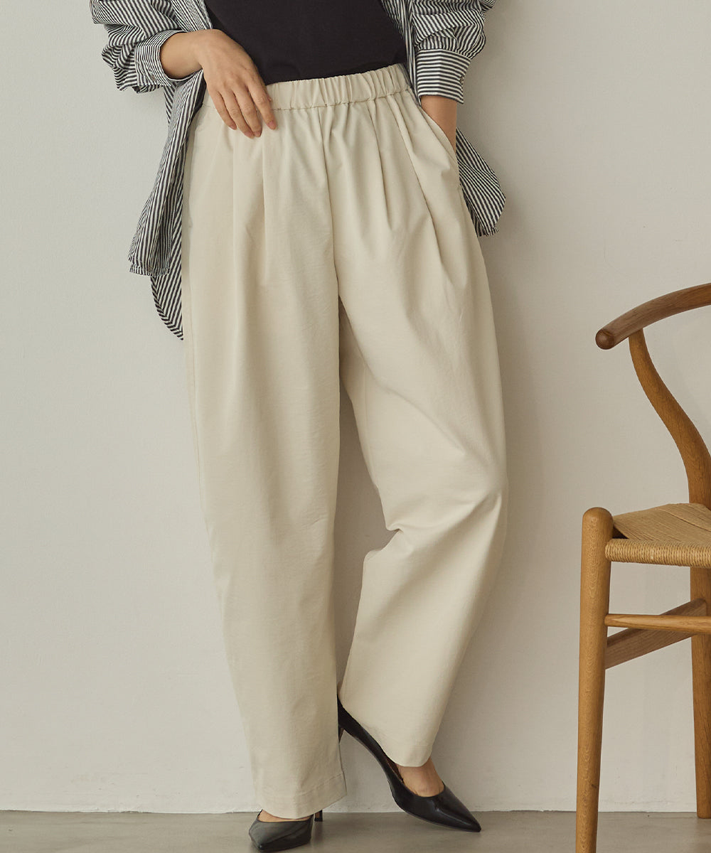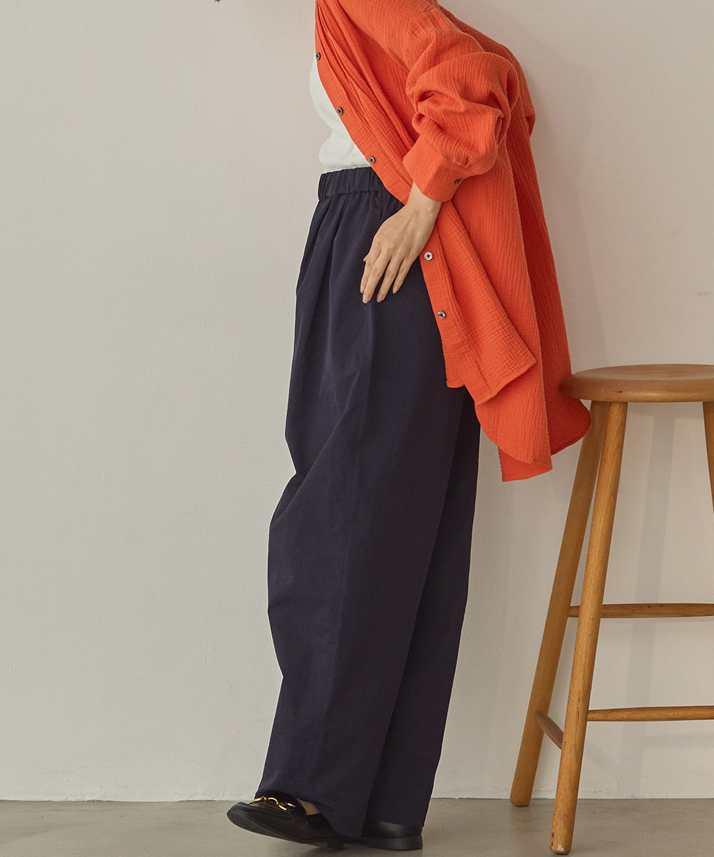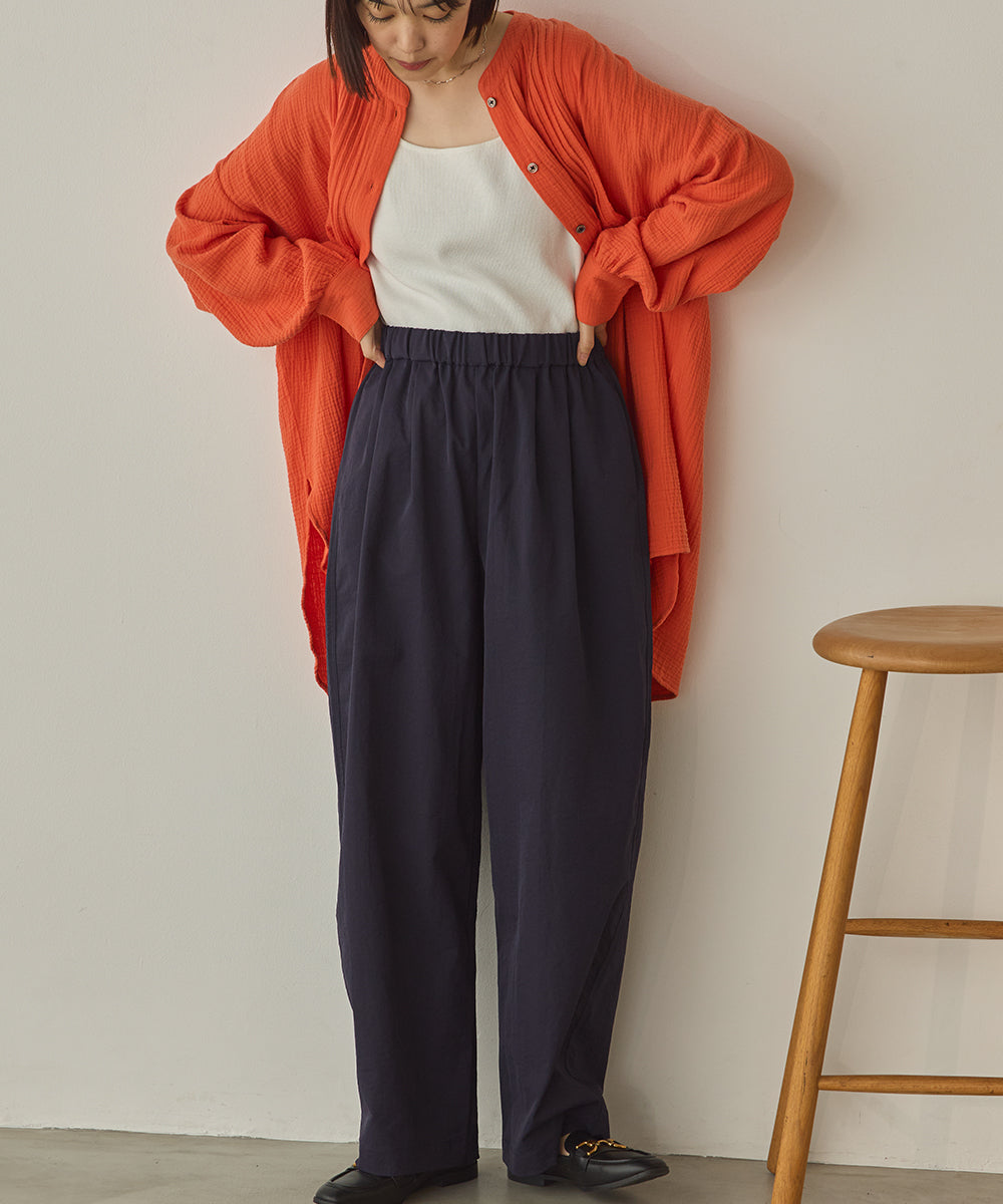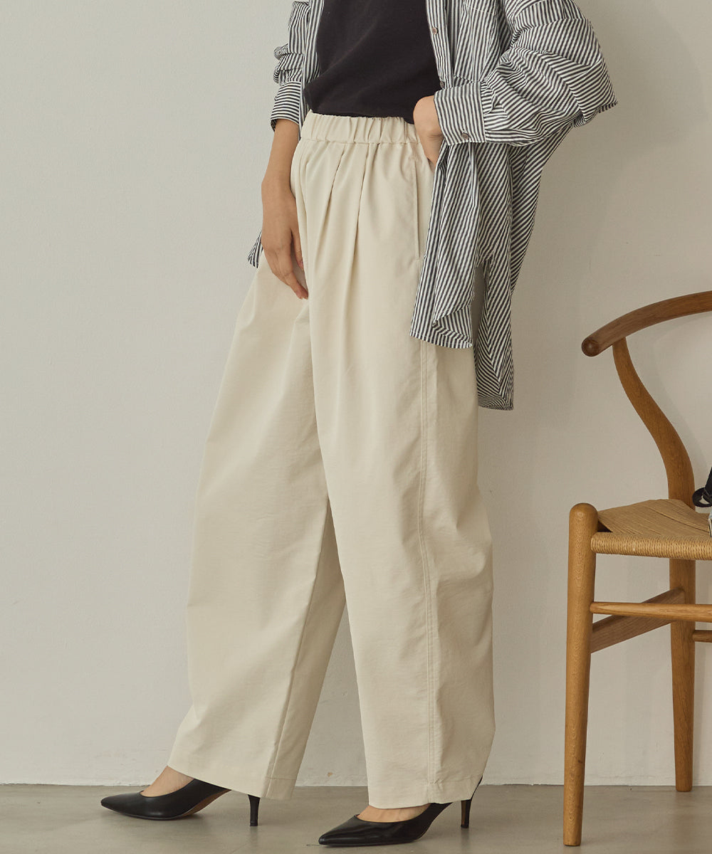 撥水シワ加工ストレッチイージーコクーンワイドパンツ[1325-1018]