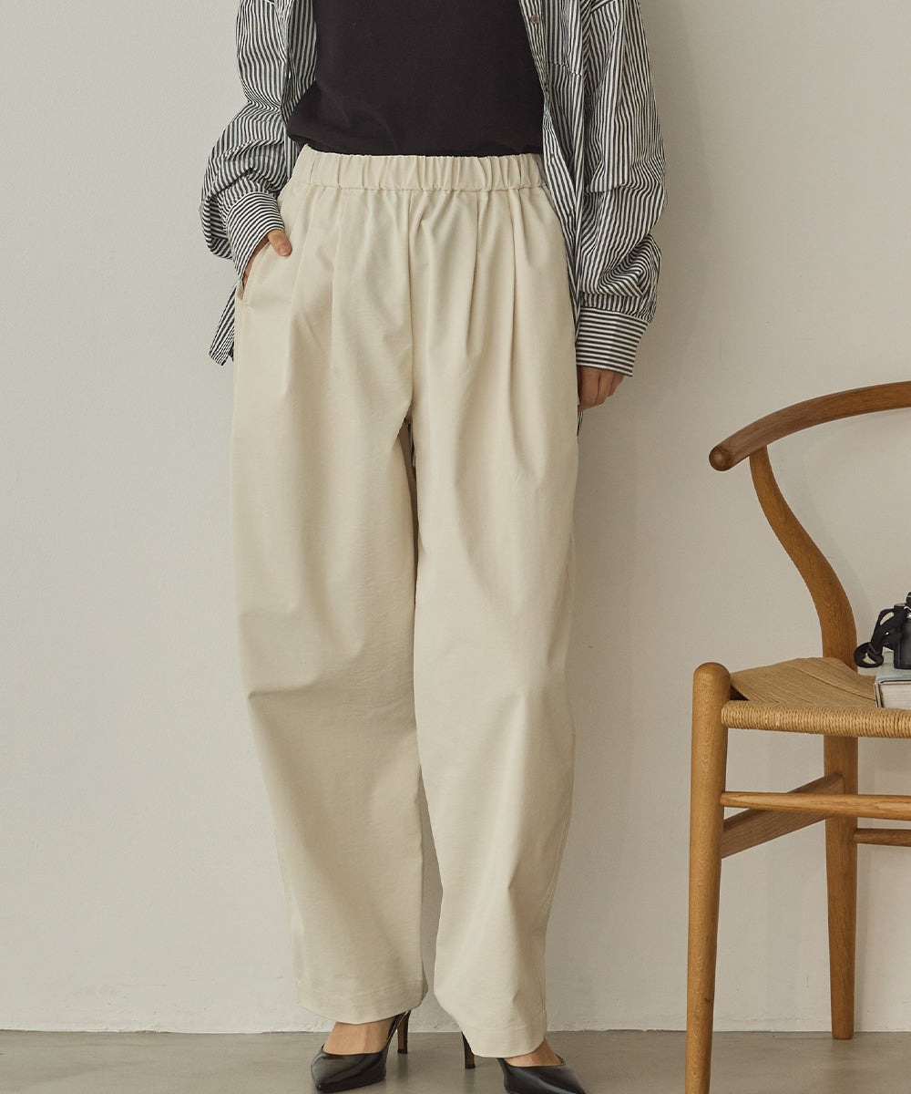 ウエストは総ゴム仕様で、程よいゆとりを持たせた快適なフィット感。