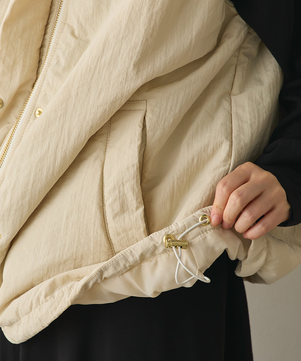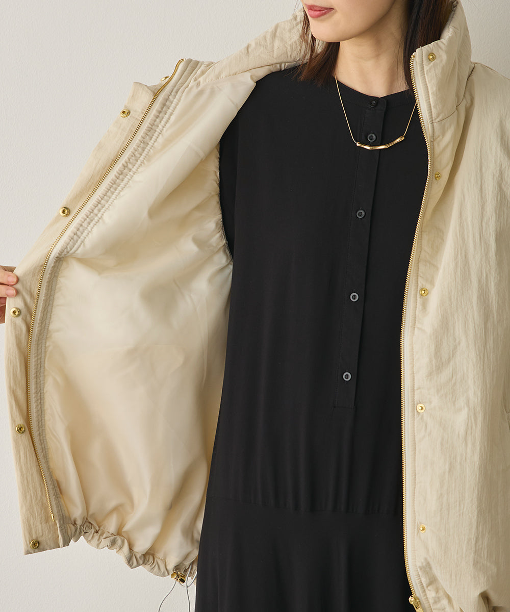 ラインシルエットに加え、裾にはドロストを配しており、 絞ればふんわりと丸みのある女性らしいラインに。