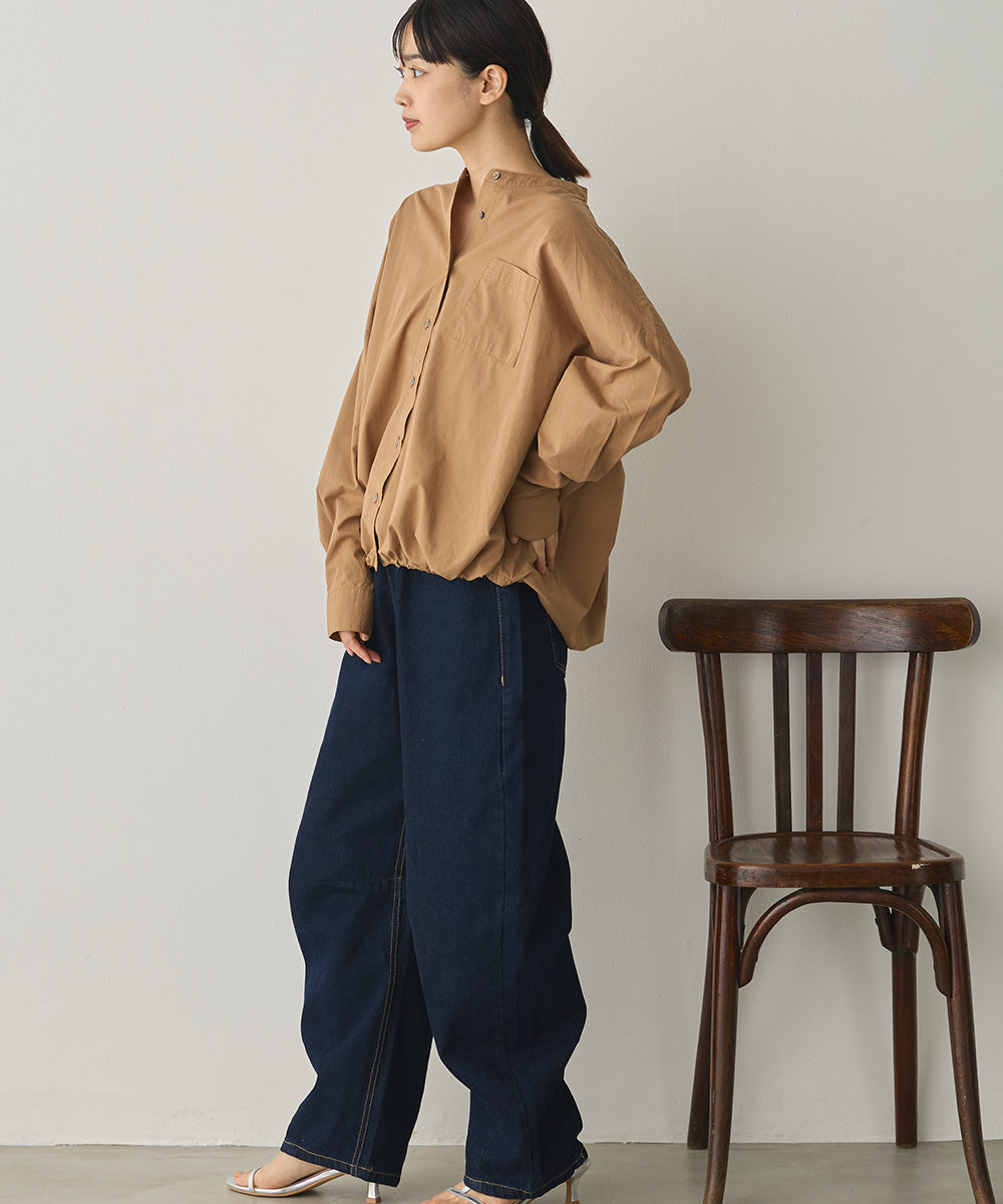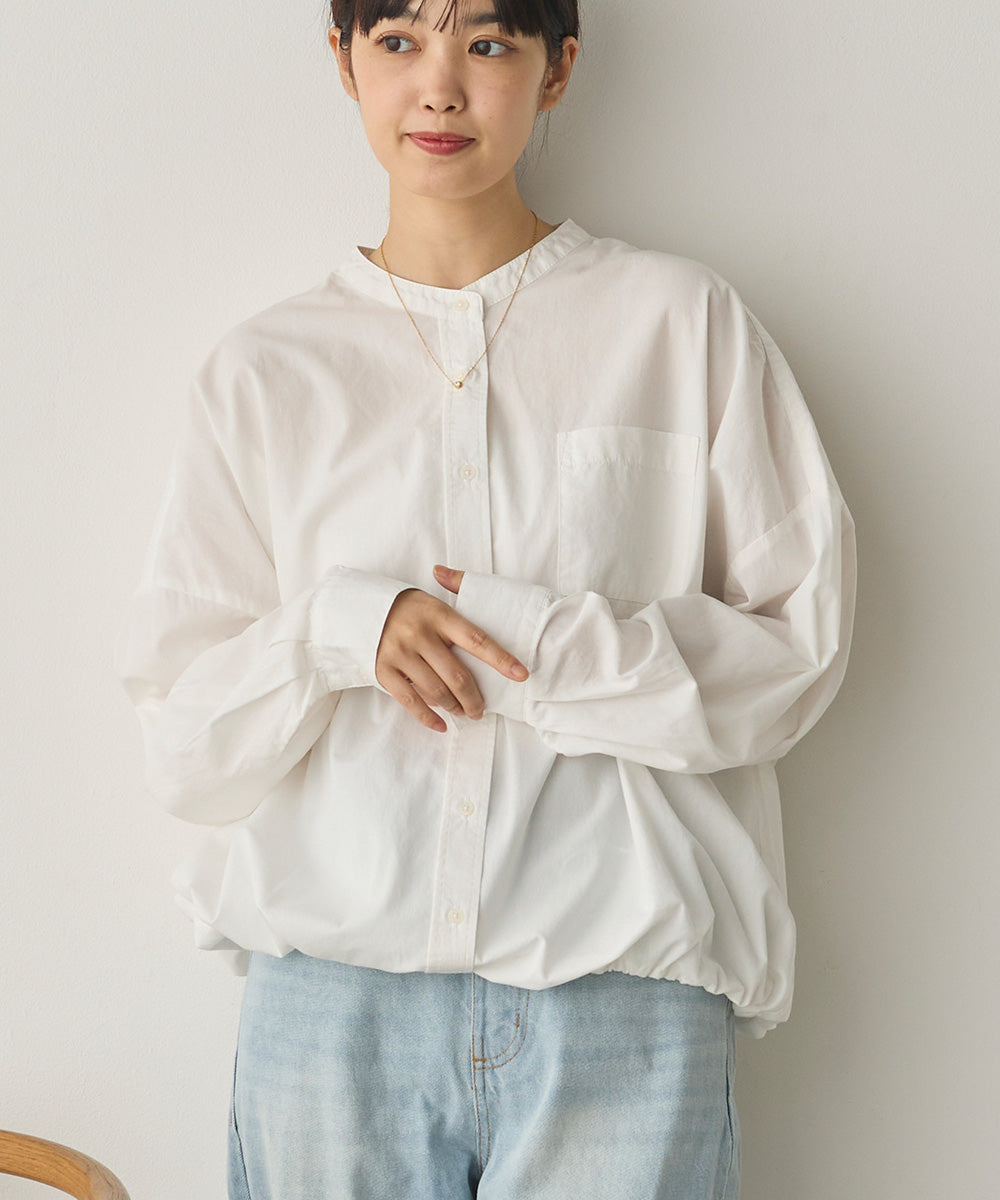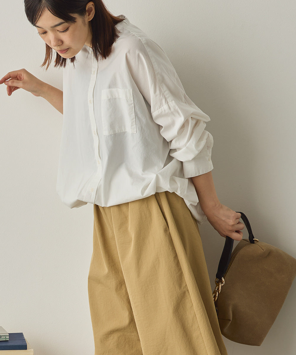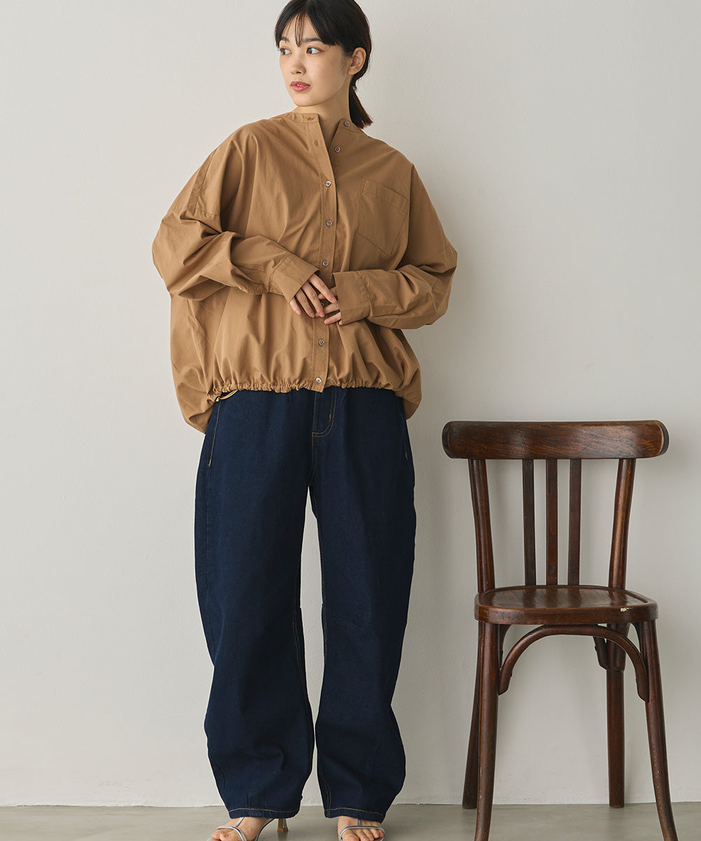 製品洗いブロード裾ドロストワイドシャツ[1325-4106]