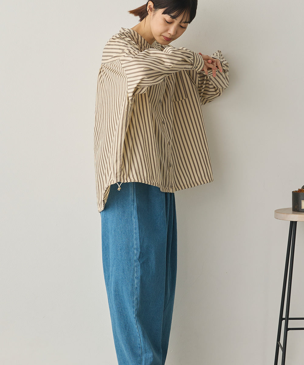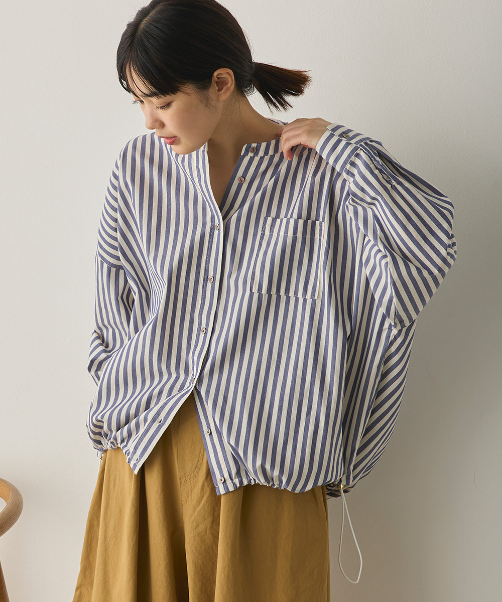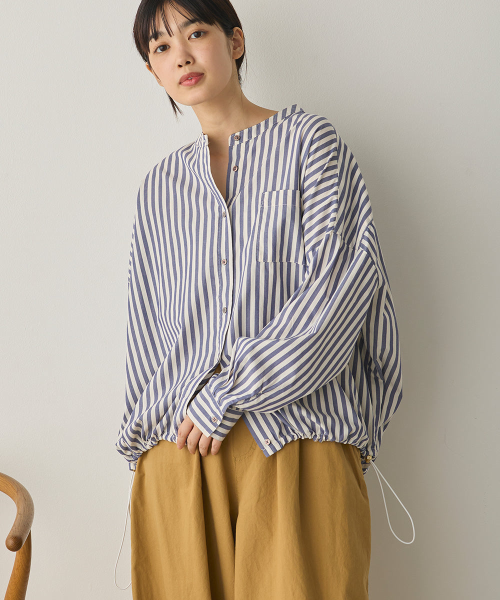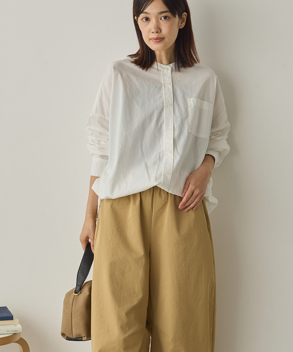 製品洗いブロード裾ドロストワイドシャツ[1325-4106]