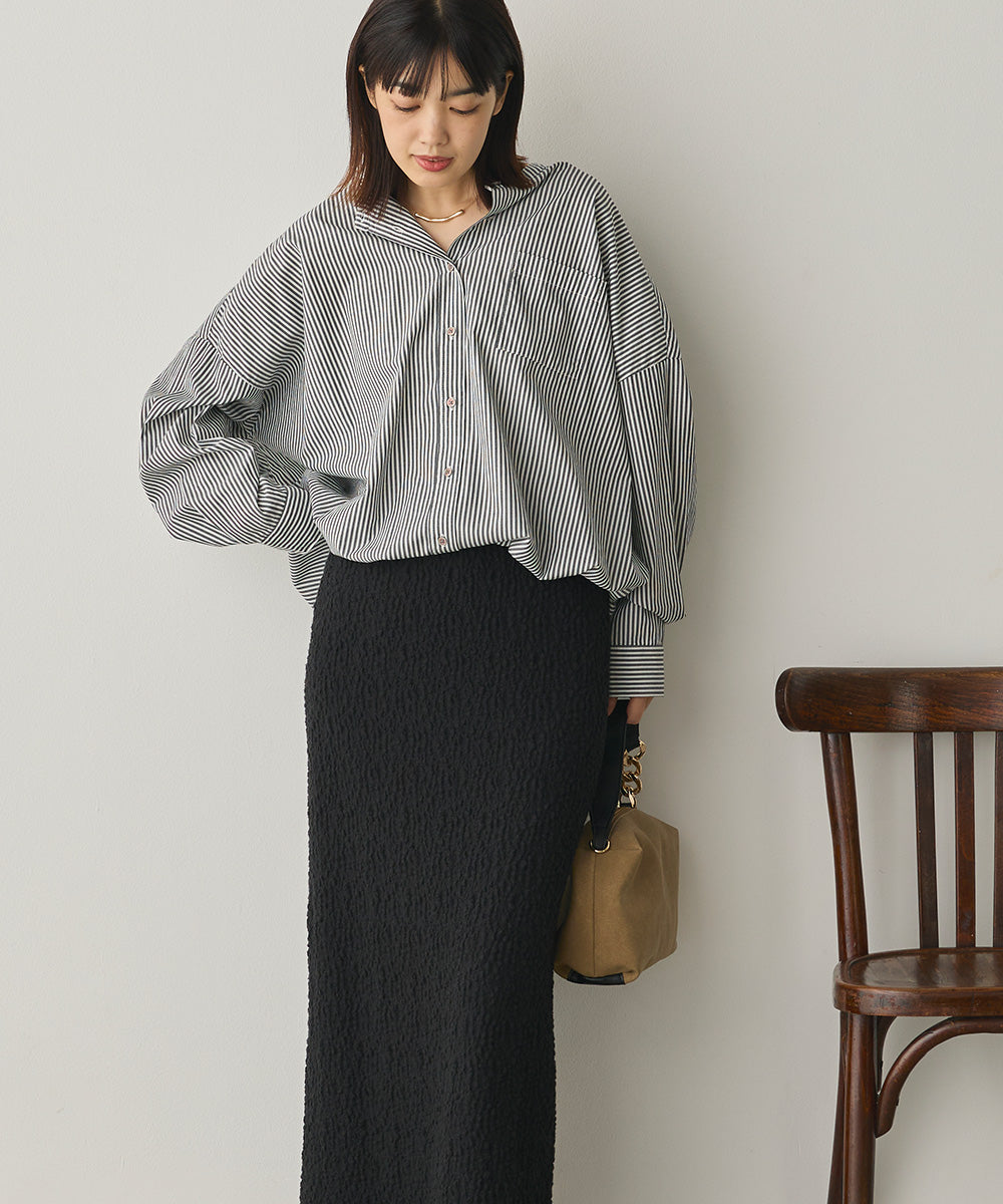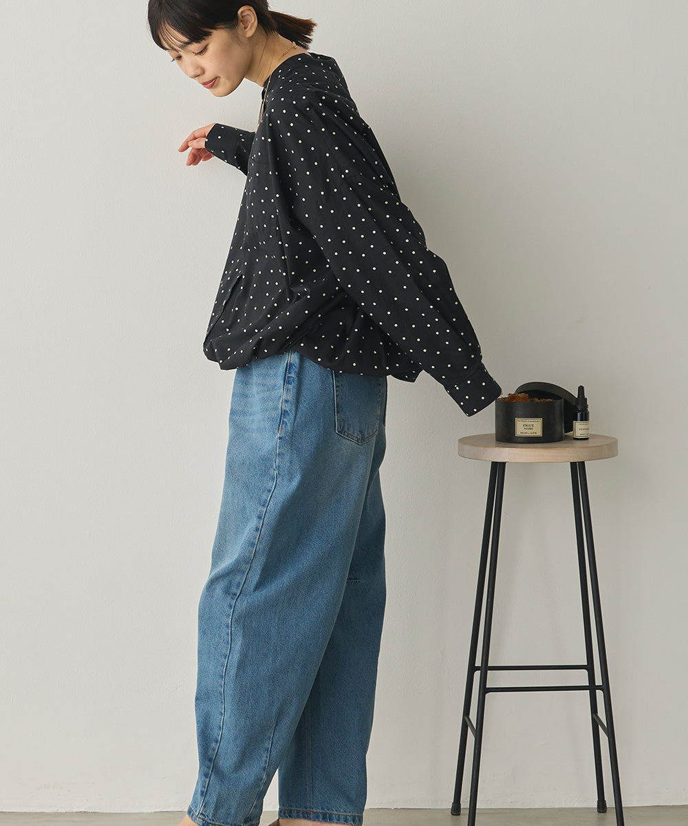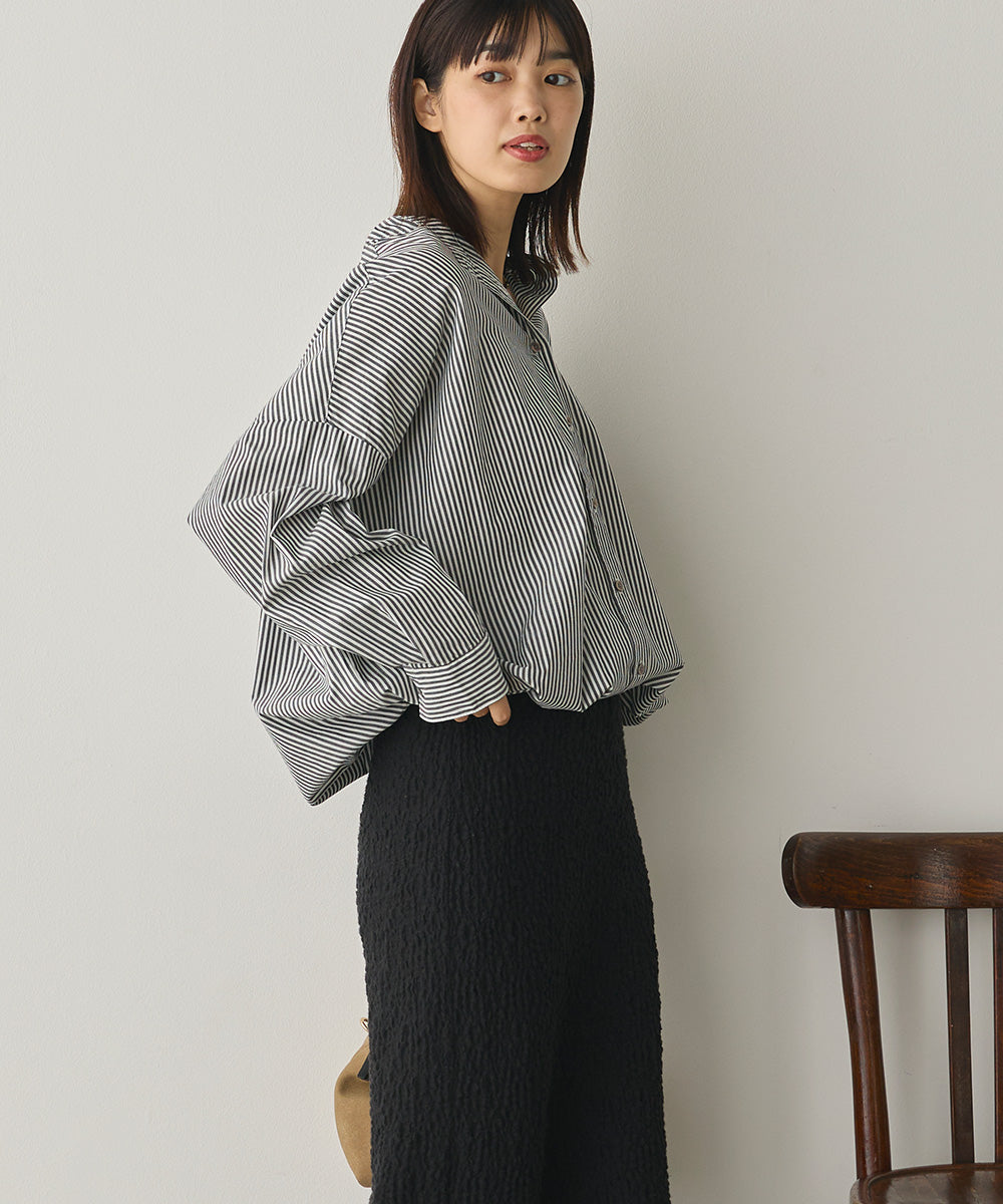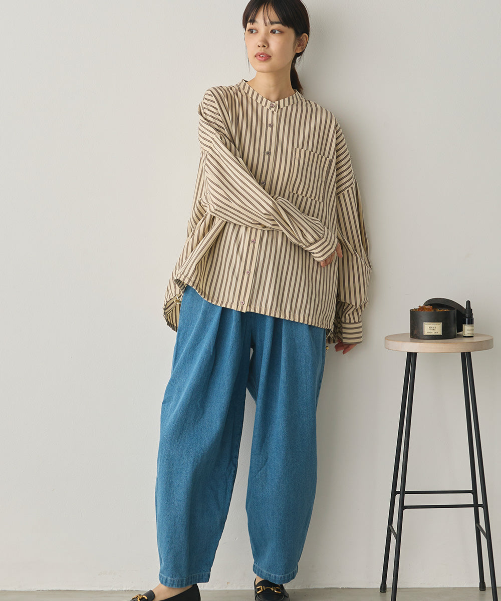 製品洗いブロード裾ドロストワイドシャツ[1325-4106]