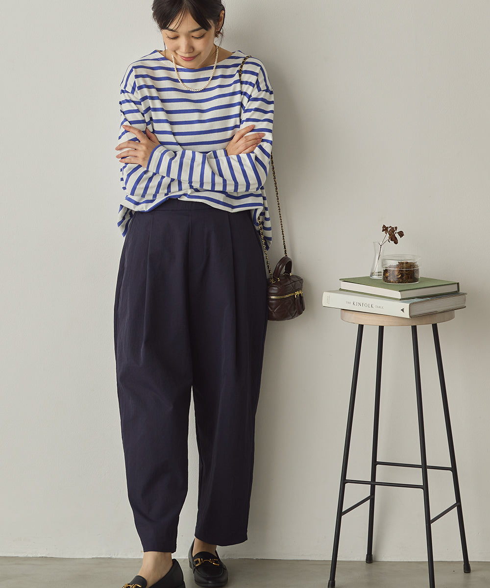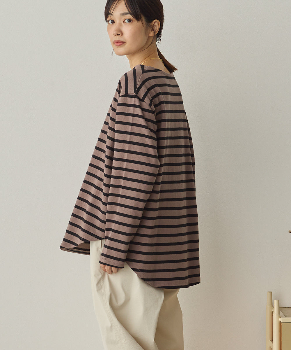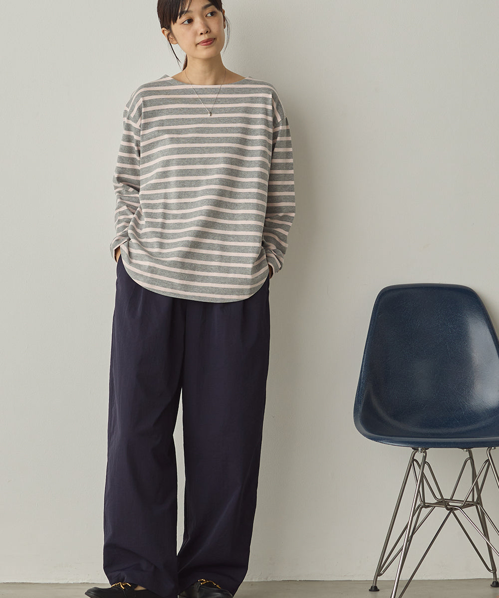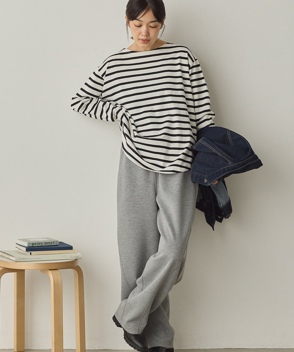 ベーシックなボーダーデザインはカジュアルながらも上品さがあり、デニムやスカート、ワイドパンツともバランス良く合わせられる万能アイテム。